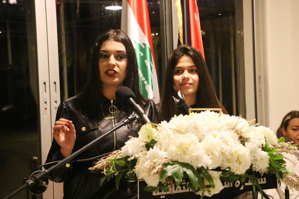 وللغزل كانت كلمات تحاكي المرأة والحب ألقاها الدكتور فادي سلامه، تلته نوال محمود في قصيدة موجهة كلماتها إلى فلسطين وشهداء فلسطين.
