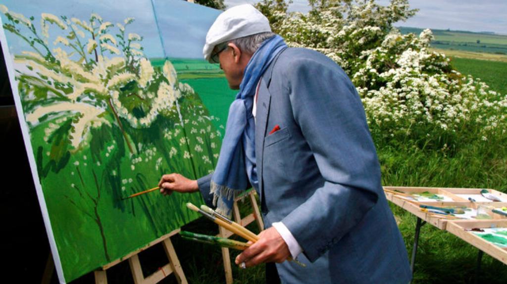 في وقت كان العالم محاصراً، لا يتحرّك بسبب وباء كورونا، حقّق الفنان هوكني بتقنيّة «الآيباد»، على مدى أسابيع قليلة، أكثر من مئة صورة. سمحت له التقنية بالإمساك السريع والمجدّد لما يريده. على طريقة الانطباعيّين، أمسك الفنان بتفاعلات الضوء والتغيير الجوّيّ بخفّة وبراعة بناءً لباليت حيّة ومضيئة؛ تأليفات مسطّحة متجاورة بنبرات فن البوب. رسم هوكني الفصول على مدى عام كامل. إفريز طوله تسعين متراً يُمثّل تتابع فصول السنة.