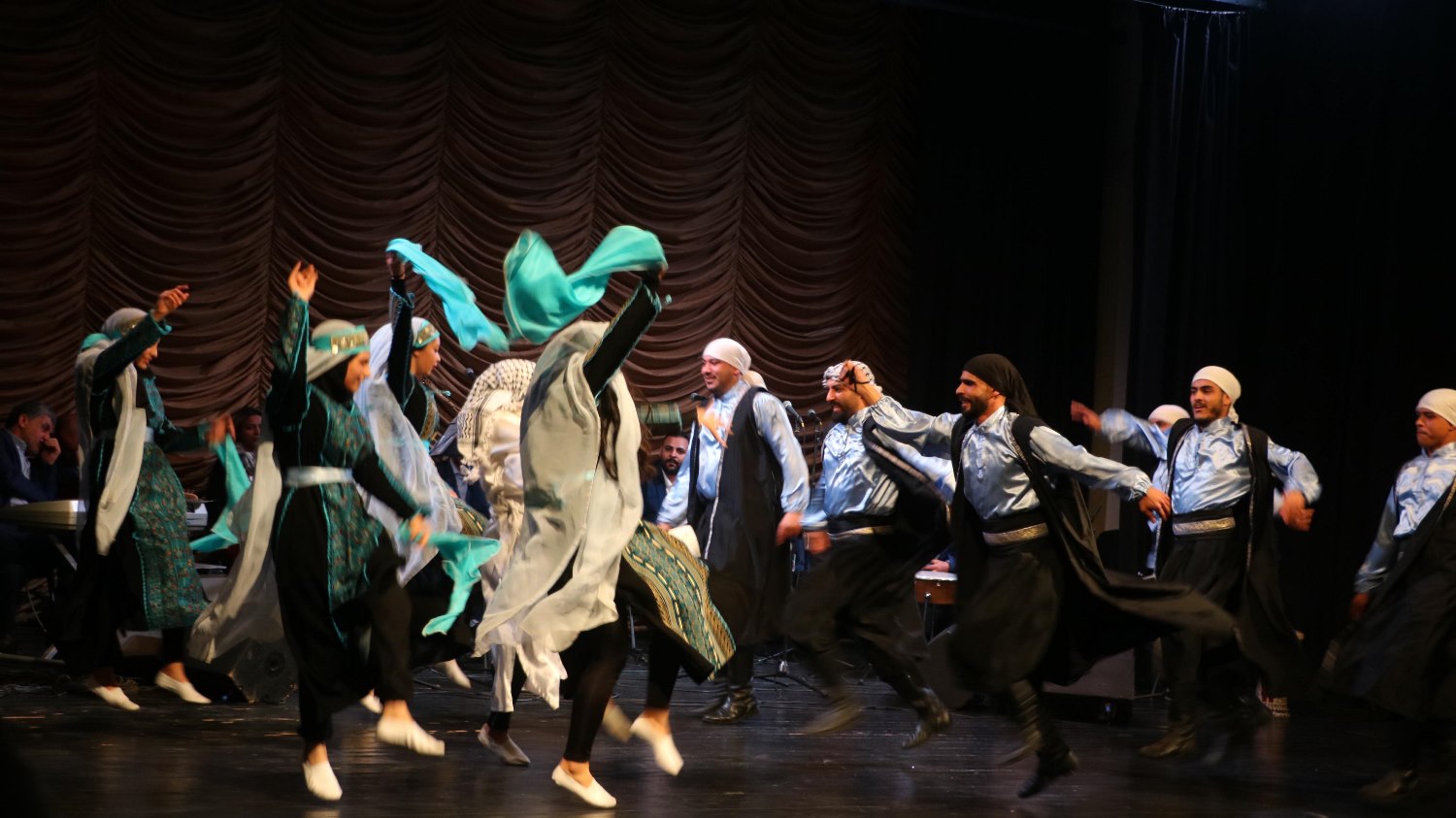 فرقة السنابل للتراث الشعبي وفرقتة البيادر للفنون الشعبية قدمتا لوحات فولكلورية راقصة على أنغام الأغاني الفلسطينية التي امتزجت بألوان الزي التراثي الفلسطيني.