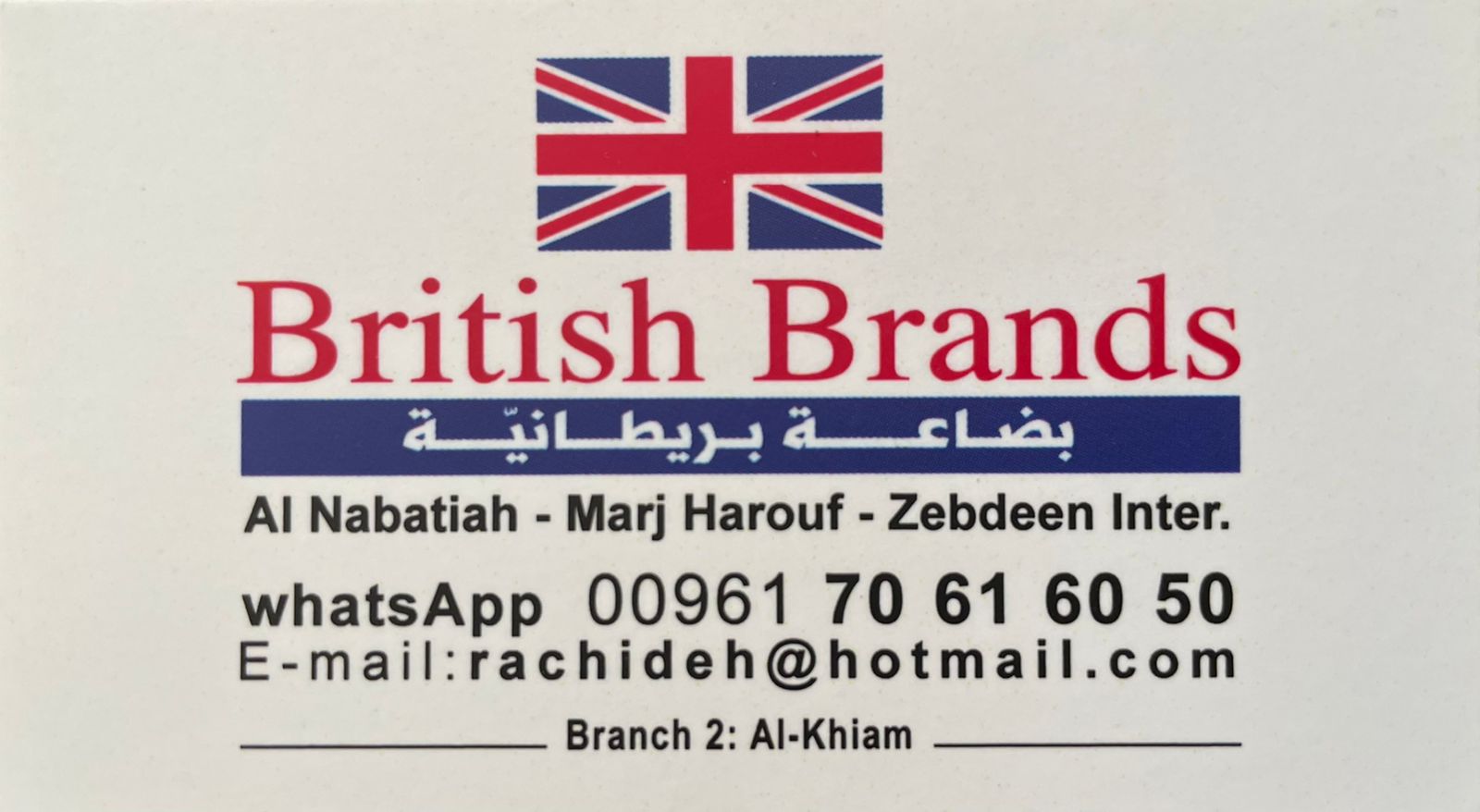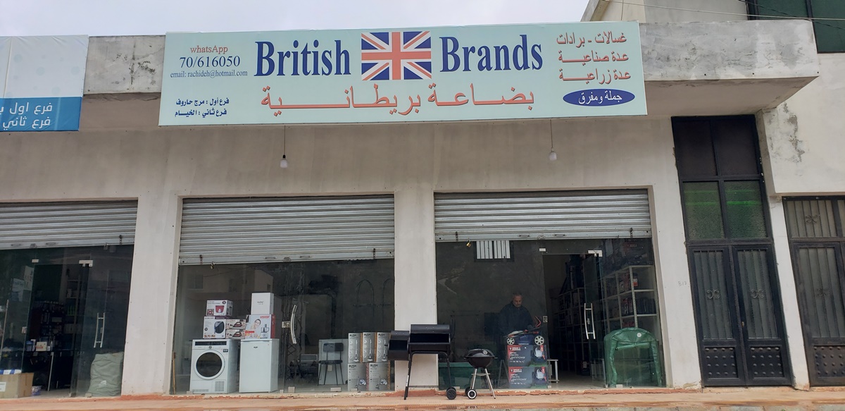 تشكيلة واسعة ومنوعة من الأدوات الكهربائية والمنزلية ومن العدد الصناعية والزراعية وغيرها من اجود الاصناف وافخمها المستوردة من بريطانيا من ماركات عالمية مختلفة نجدها بأسعار مناسبة بالجملة والمفرق، في محلات British Brands الكائنة في الخيام منطقة المرج في محلة باب الثنية مقابل محطة تليجي.