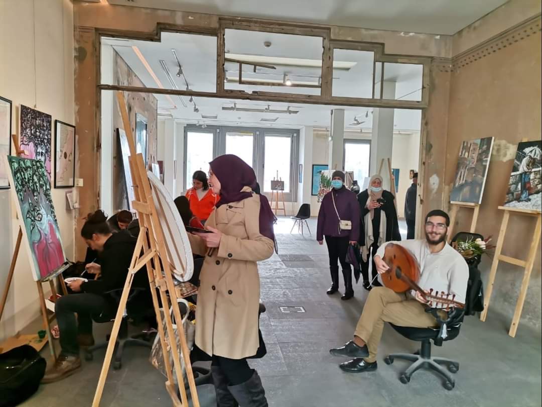 وشارك في تنظيم المعرض كل من التشكيليتيين ثريا حلال وفدوى حمدان من ادارة الملتقى .