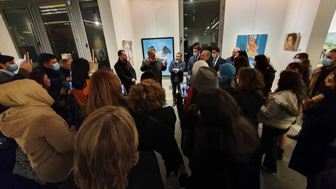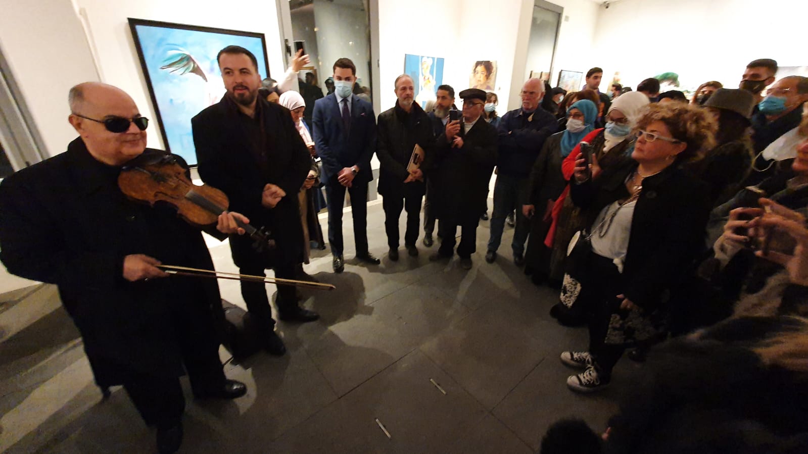كما قدم المصور ضومط سنجب لوحة لرئيس الملتقى محمد علوش وقدم التشكيلي اندريه كالفيان لوحة خاصة لمنسقة المعرض بسكال مسعود .