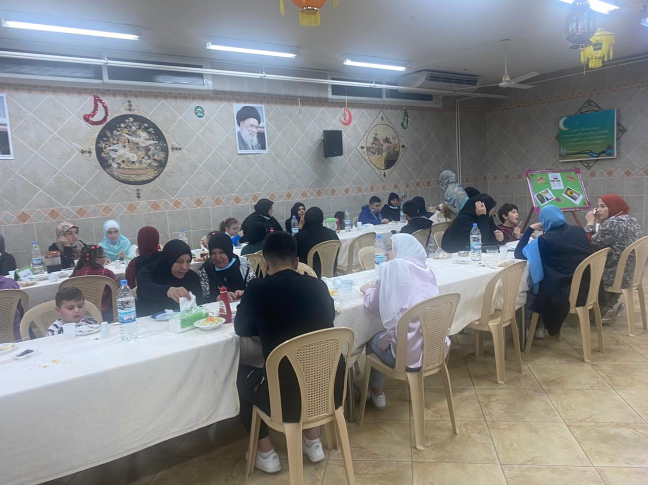 كان جواً مقروناً بالألفة واللطف عند تناول وجبة الإفطار بمعية أطفال هم أقرب لملائكة الرحمن وأن ترى البهجة والسناء مصحوبة بالبراءة الشديدة تشع من عيونهم الجميلة، وكأنها تشدو بأهزوجة ترحيب بضيوفهم الأعزاء في تلك الأمسية الرمضانية الغراء، تم ادراج برنامجاً رونقه رقيقا أعقب الفطور، بدء بكلمة روحانية مسجلة لمؤسس هذه الجمعية الخلاقة، صاحب السماحة الراحل أية الله السيد محمد حسين فضل الله (قُدس سره الشريف)، ثم قُدمت أنشودة حلوة من براعم المبرة الميامين، واختتم البرنامج بعرض فيلما تسجيليا للإنجازات ونشاطات مبرة النبي إبراهيم (ع) وثانوية عيسى ابن مريم (ع)، الشيء الذي جعلها مميزة وتبّز قريناتها من سائر المؤسسات الخيرية، ليس فقط على مستوى الجمهورية اللبنانية بل تجاوز الأمر الى سائر الأقطار الإسلامية المختلفة، وأخير قام رجل البر والإحسان الراعي لهذا الجمع المبارك الحاج الفاضل "أبو حسن – أكرم حسن حمود " (وفقّه المولى لما يحب ويرضى)، بجولة على أحباب الرحمن الذي تواجدوا في هذا الحفل البهيج، موزّعا عليهم التقديمات والهدايا الرمضانية الظريفة، فازدادت بهجتهم وعمت الفرحة قلوبهم الطاهرة.