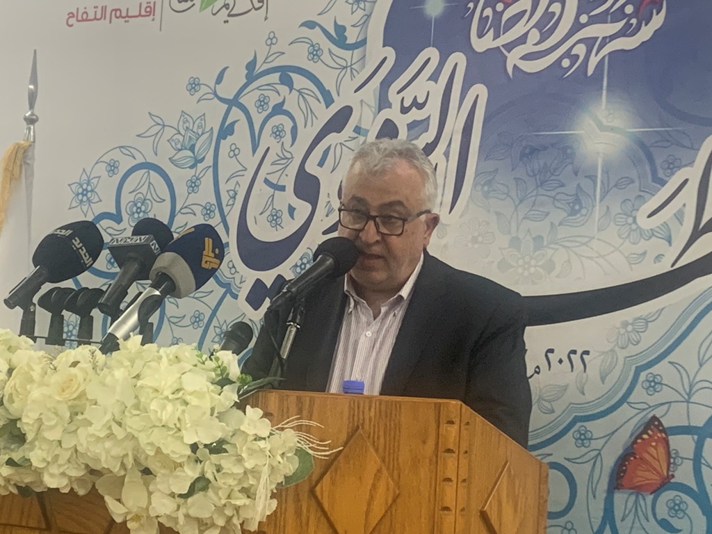 اضاف: نؤكِّدُ في اتّحاد بلديّات إقليم التفّاح.... أنَّنَا سنبقَى إلى جانِبِكُمْ... وفي خدمةِ أهلِنَا وشعبِنَا... وفي كلِّ الميادينِ والأنشطَةِ التي تخدمُ شعبَنَا وأهلَنَا... إذْ أنَّنَا في الاتّحاد نقفُ بإجلالٍ أمامَ عطاءاتِ جمعيّةِ البرِّ والاحسانْ... هذهِ الجمعيّةُ العريقَةُ التي شكّلَتْ القدوَةَ والمنارَةَ لغيرِهَا من المؤسّساتِ والجمعيّات...