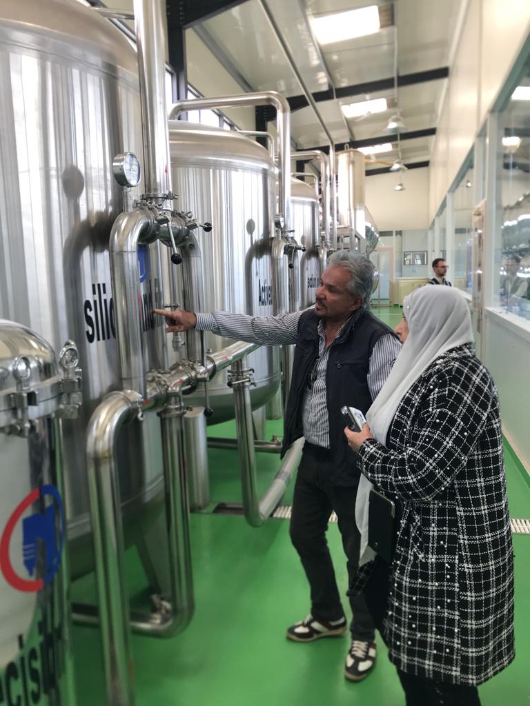 أول ما شدنا تلك المزرعات الجميلة المنسقة وكأنها ترحب بزوار المصنع الذي طالعنا بتنظيمه ونظافته وسير العمل فيه، وكأن العمّال يعزفون على أجهزة تمر عبرها عملية صب عبوات المياه برشاقة لتأخذ طريقها عبر عدة مراحل دون أن تمسها يد العاملين.