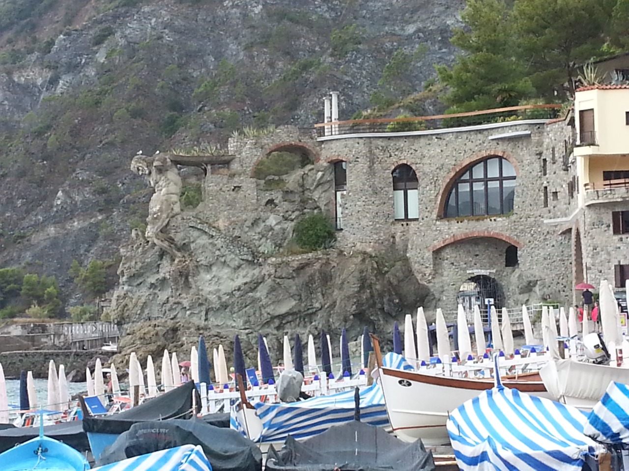 في اليوم الثالث كانت زيارتنا لمنطقة تُسمّى الأراضي الخمسة "شينكوي تيرّي"، اقتصرت الزيارة على رؤية ركن صغير جداً من هذه الأراضي وهو ركن إمتاز بجماله الطبيعيّ والجغرافيّ على شاطىء البحر ولون شاطئه الذي تميل حصاه إلى الرماديّ. حينها أخذت السماء تلقي بمخزونها من الأمطار، صدّقنا حينها ما قِيل لنا أنّ الطقس في إيطاليا متقلب جداً يميل إلى الصحو ثم الأمطار بشكل مفاجىء! إلا أنّ هذا الطقس لم يمنع روّاد السباحة من التمتّع بعذوبة المياه، الذين اعتادوا على ما أظنّ على مزاجيّة السماء في هذا الركن من العالم.