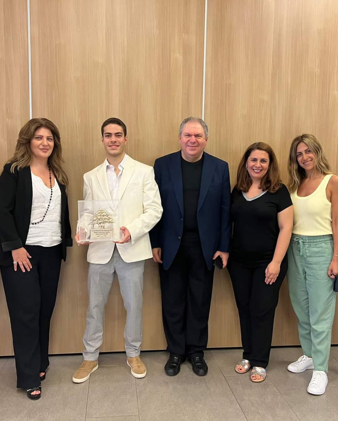 تسلم الطالب المتفوق كريم مروان حريق، جائزة اللواء الركن محمود طي ابو ضرغم للتميز في الدراسة والرياضة والصفات القيادية في الجامعة اللبنانية الاميركية “LAU، في حضور ولدي اللواء الراحل ابو ضرغم نبيل ورلى، طلال الخليل ومسؤولين عن الطلاب والتنمية في الجامعة.