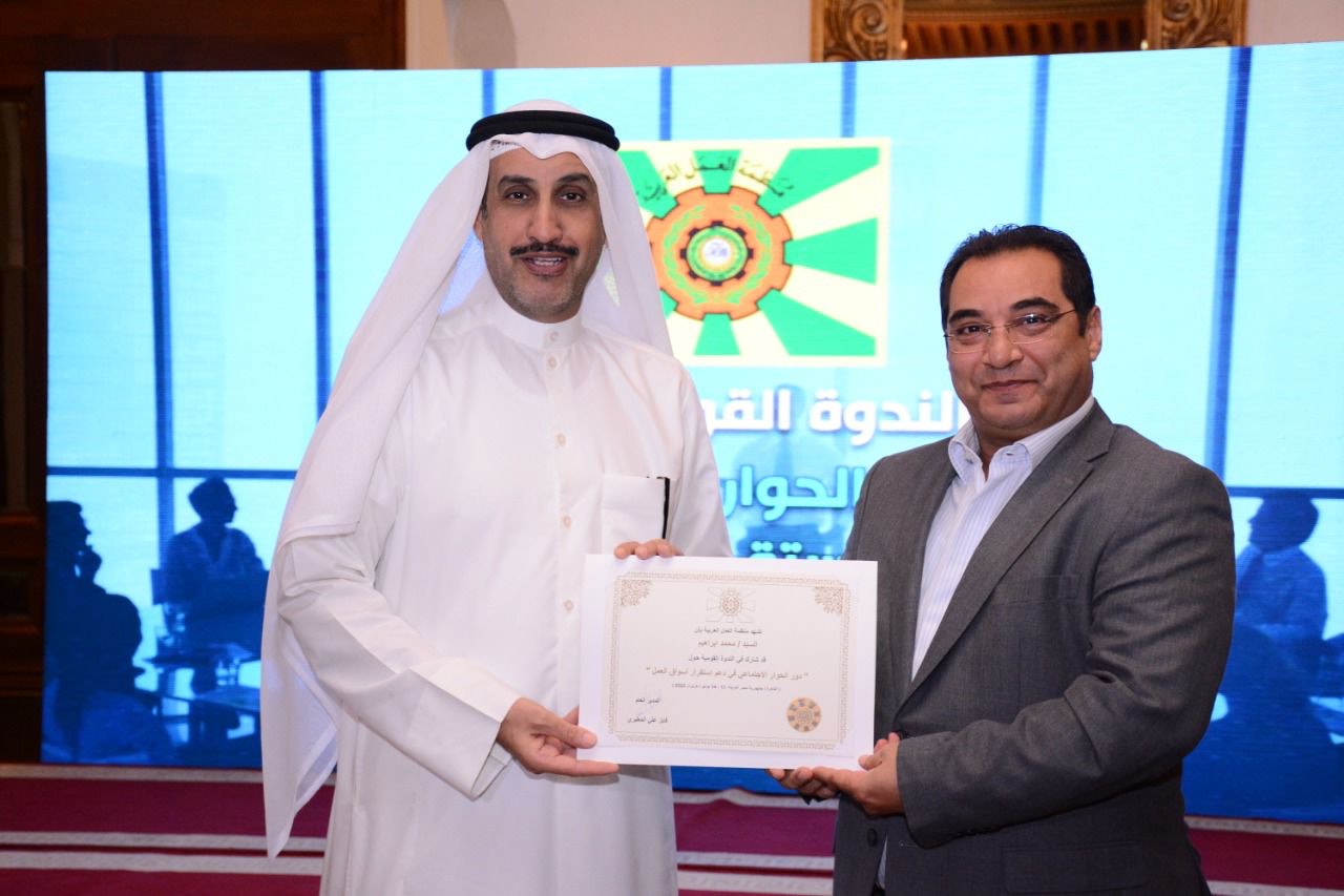 في إطار نشاطات منظمة العمل العربية عقدت في العاصمة المصرية القاهرة بفندق انتركونتننتال - سيتي ستارز - الندوة القومية حول “دور الحوار الإجتماعي في دعم استقرار أسواق العمل “ على مدى يومين