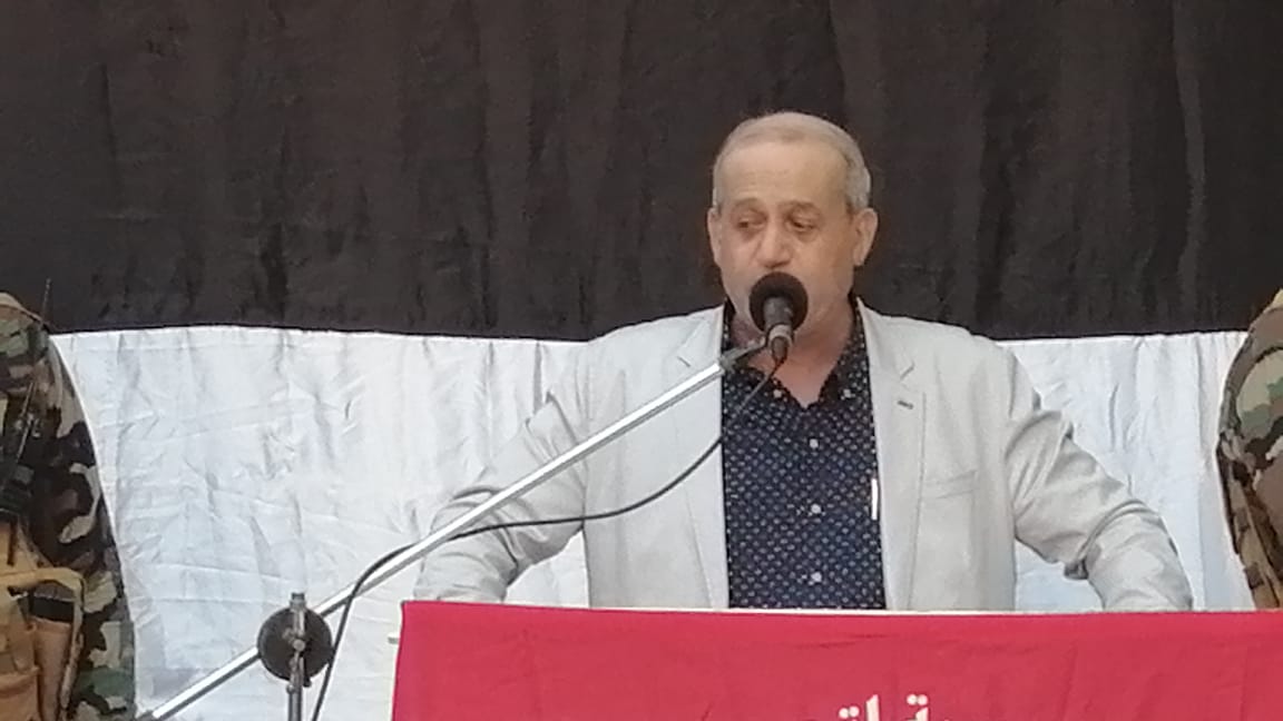 كما أكد في كلمته الاستمرار على درب الشهداء والمقاومة حتى التحرير والعودة، فلا دولة من دون عودة اللاجئين، ولا عودة إلا بالتحرير، ولا تحرير من دون البندقية، سلاح يتوارثه الأجيال.