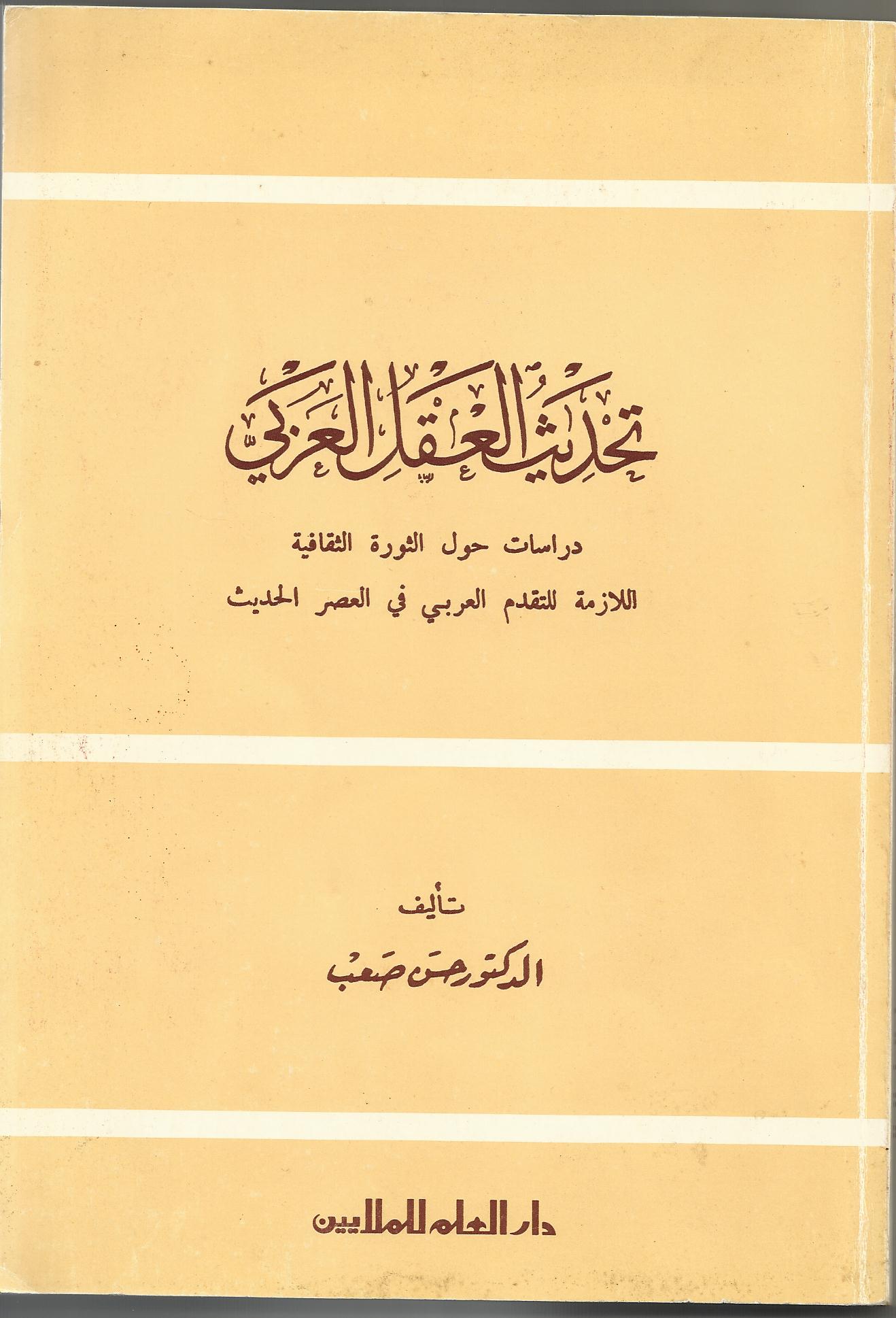 - تحديث العقل العربي: الصادر في العام 1969، وجاء في مقدمة الكتاب “إن قضية تحديث العقل العربي هي قضيتنا الحضارية الأولى، لأنها القضية التي تتوقف عليها مواجهتنا لجميع قضايانا المصيرية مواجهة قويمة فعقلنا هو الذي يقرر مصيرنا. أننا نثق بقابلية العقل العربي لكل تقدم. ولذلك نريده أن يقبل على التحديث من بابه الواسع وليس التحديث بالضرورة مرادف للتقدم ولكنه أصبح الآن الشرط الضروري لأي تقدم أفضل منه، إن مستلزمات التحديث الأساسية هي الحرية الإنسانية، والتجريبية العلمية، والتنظيمية العقلانية والإبداعية الفكرية. إنها مستلزمات غير كافية ولكنها ضرورية لكل تقدم حقيقي فلا بد للعقل العربي أن يستسيغها وهو ينشد اللحاق بالتحضر الحديث وتجاوزه لتحضر عربي وإنساني أفضل منه”.