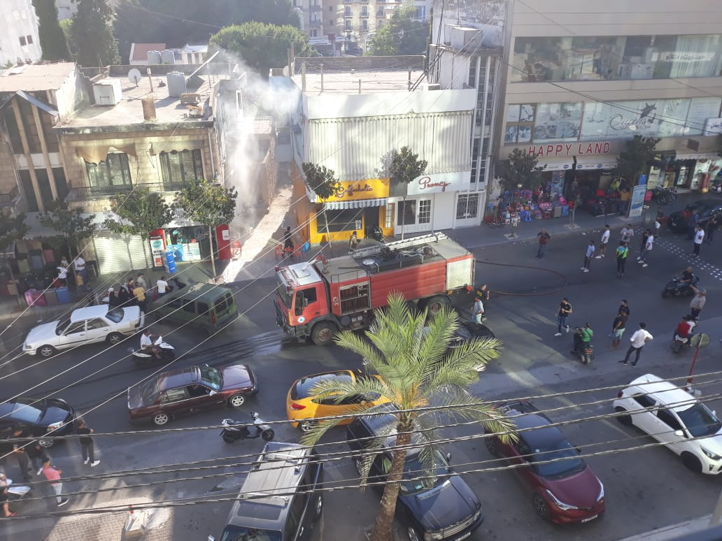 تمكن عناصر الدفاع المدني اللبناني في النبطية عصر اليوم من إخماد حريق هائل شب في محل كافيه عباس عواضة في شارع المصارف في النبطية .
