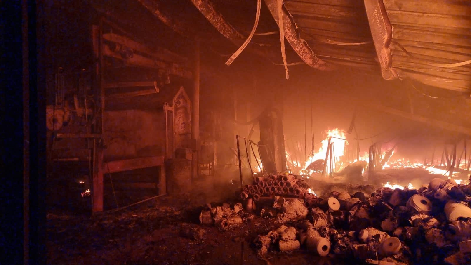 وتسبب النيران القوية في تقويض اسقف من مباني المعمل وسقوطها بفعل الحرارة المرتفعة جدا ، وتعاونت عشرات فرق الاطفاء من الدفاع المدني من كافة المناطق وفرق من اتحاد بلديات الضاحية الجنوبية واقليم التفاح والهيئة الصحية الاسلامية وكشافة الرسالة والدفاع المدني الفلسطيني من مخيمات صيدا وصور اضافة الى عشرات صهاريج المياه التي تساعد الاهالي في تقديمها في محاولة لاطفاء الحريق الذي ادى الى تدمير كل مقومات استمرارية المعمل وتشريد 200 عائلة من خلال 200 عاما كانوا يعملون فيه ويؤمنون مصادر رزقهم منه اضافة الى تغطية منتجاته من السجاد الى الاسواق اللبنانية والعربية والافريقية