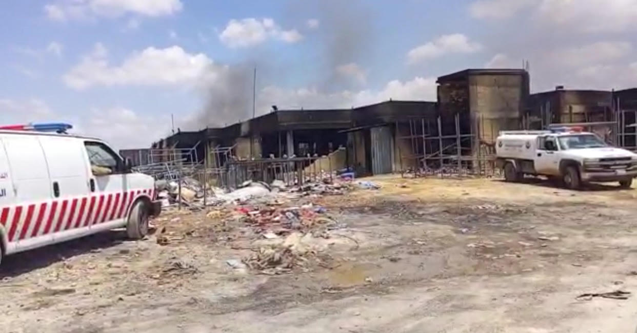 فرق الاطفاء من مختلف الجمعيات انتقلت الى مرحلة الاستراحة مع ترقب وانتباه لمنع تجدد النيران وخاصة ان هناك مواد كيماوية تستعمل في تصنيع السجاد والموكيت ماتزال كمية منها غير متضررة.