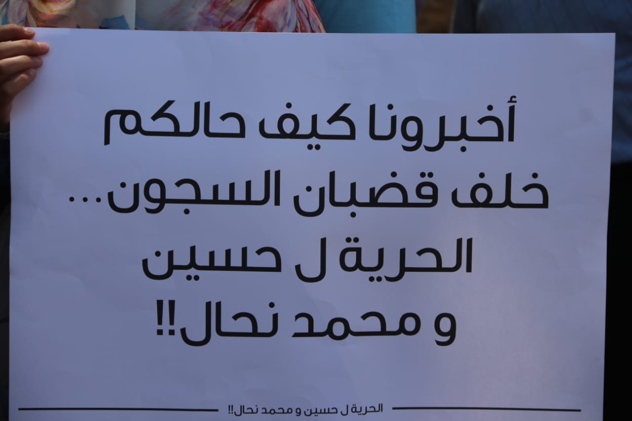 ورفع المحتحون لافتتا كتب على بعضها "35 يوما ولا نعرف مصير احبتنا ، اشتقنا نشوفكم والله" ، و" اخبرونا كيف حالكم خلف قضبان السجون الحرية لحسين ومحمد نحال" ، و" دولتنا تكرم السياح الاماراتيين ومواطنين لبنانيين موقوفين في الاماارت"، و" سمو الشيخ زايد بن محمد ال نهيان : نطالب بالافراج عن الموقوفين حسين ومحمد نحال"، و" لا للتوقيف الطائفي والمذهبي ، ألسنا مواطنون لبنانييون".
