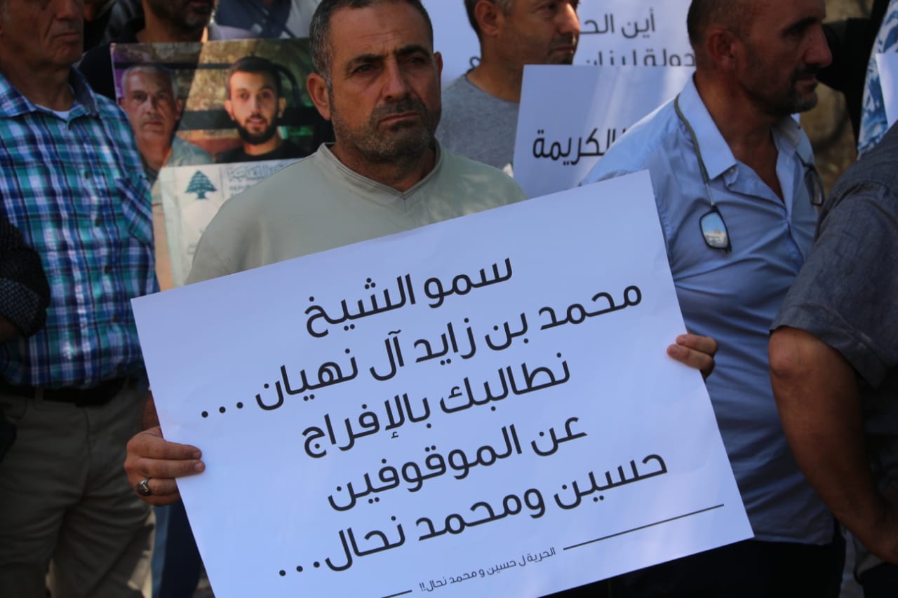 نظمت عائلة نحال اعتصاما امام سراي النبطية الحكومي احتجاجا على تقاعس الدولة اللبنانية بالتواصل مع السلطات الاماراتية لكشف مصيرهم ابنهم حسين علي نحال وولده محمد والافراج عنهما سريعا واللذين اوقفا في العاشر من حزيران الماضي في مطار دبي من قبل السلطات الاماراتية ولم يعرف مصيرهما حتى اليوم ولا اسباب توقيفهما.