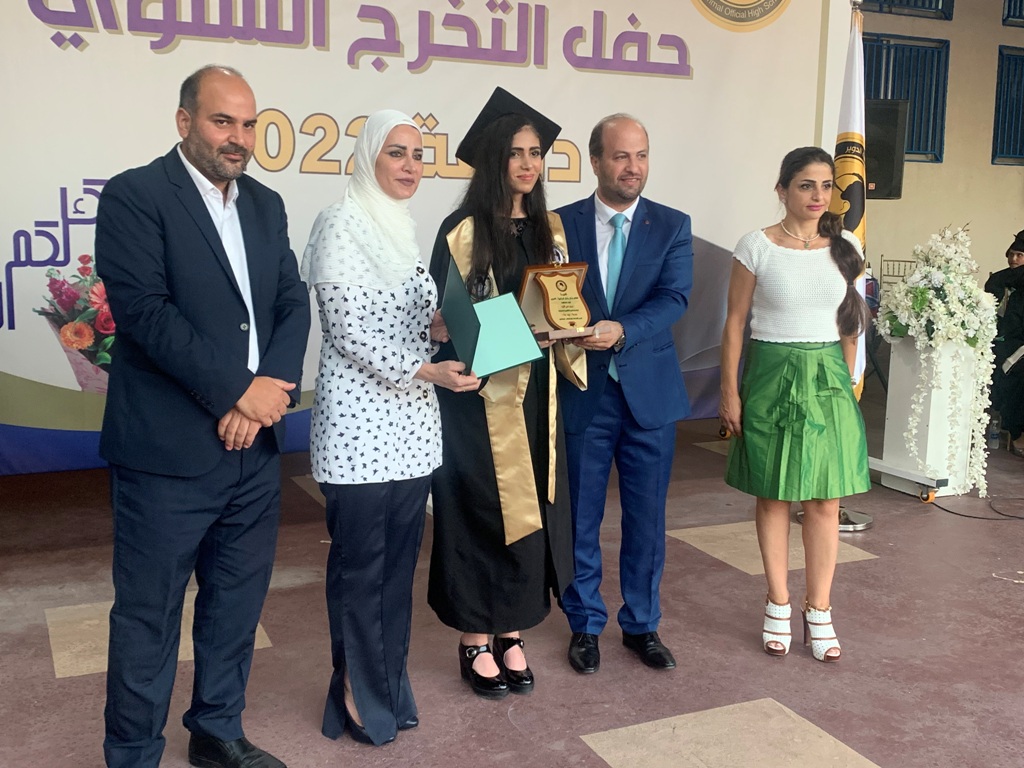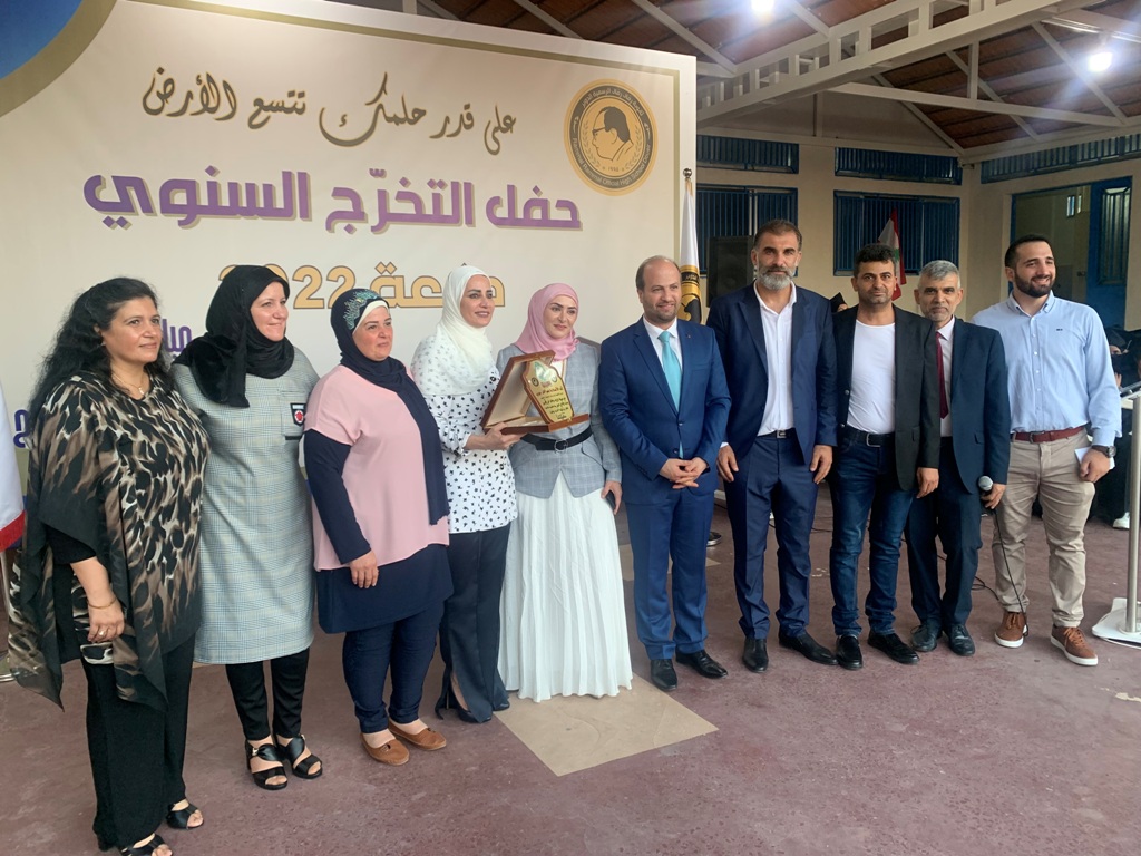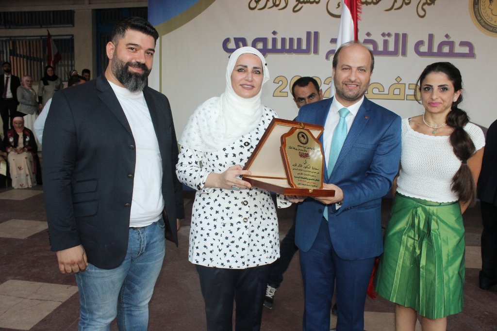 وفي ختام الحفل قدمت مديرة الثانوية نعم جوني للدكتور خالد فايد درعا تقديريا عربون وفاء وتقدير لجهوده . كما تم تقديم درع تكريمي لمديرة الثانوية تقديرا لجهودها من قبل الهيئة التعليمية ثم جرى توزيع شهادات تقديرية على الطلاب المكرمين والمتفوقين.