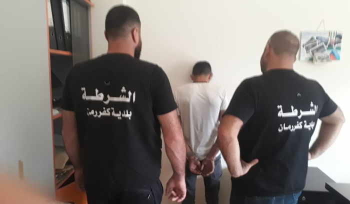 تمكن عناصر من شرطة بلدية كفررمان من القاء القبض على احد افراد عصابة سرقة سيارات فجر اليوم أثناء محاولته الهرب بسيارة من نوع كيا تحمل الرقم b590292 مسروقة من مدينة بيروت ، وتم تسليمه الى الأجهزة الامنية المختصة".