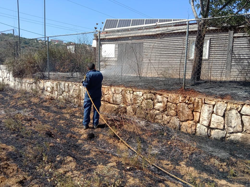 اخمد عناصر الدفاع المدني من مركز جديدة مرجعيون حريق أعشاب و بعض أشجار الزيتون و تضرر خيمة من الخشب والنايلون في خراج بلدة القليعة قضاء مرجعيون .