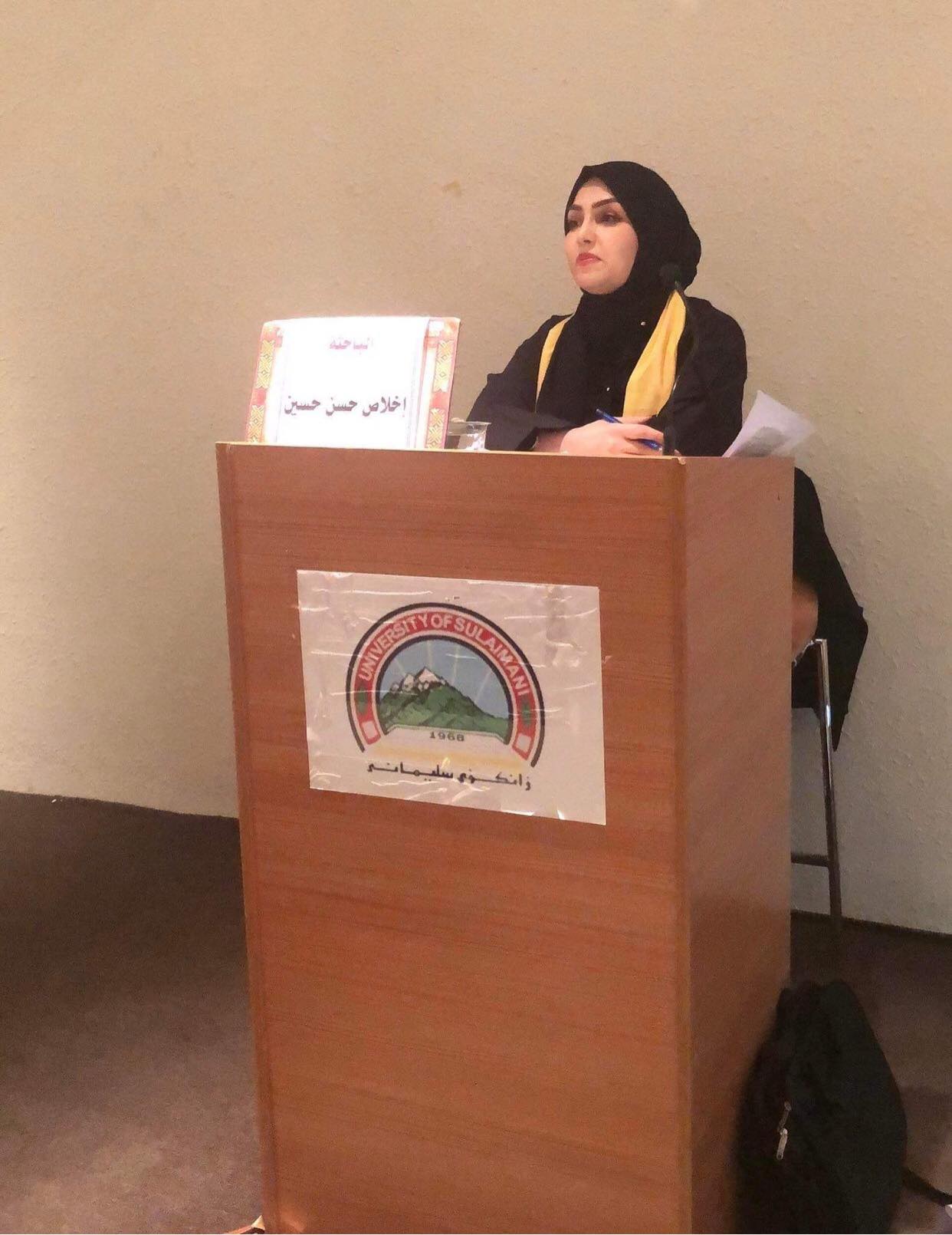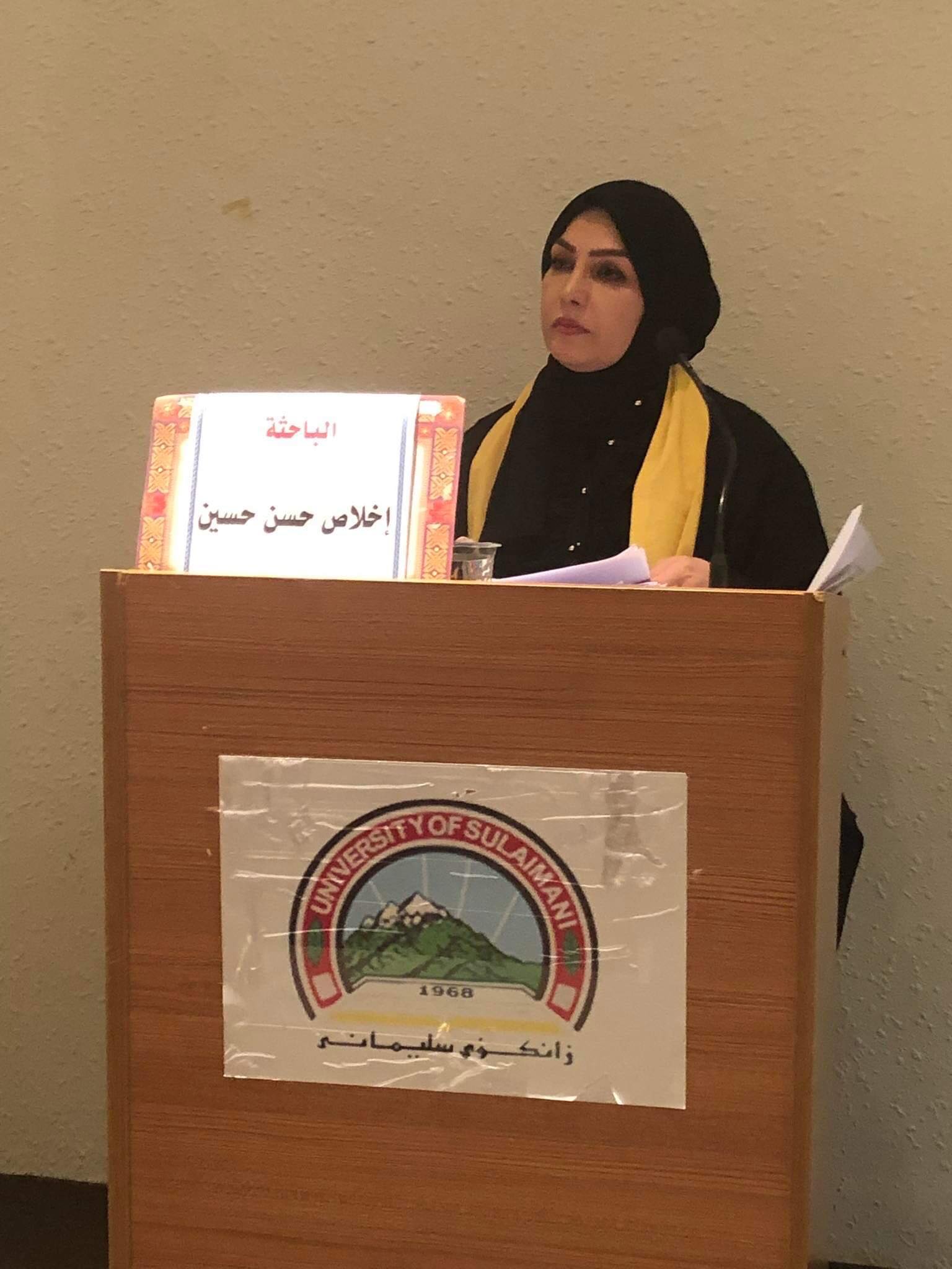 السّليمانيّة/ إقليم كردستان العراق/ العراق: ناقشت الباحثة الكرديّة إخلاص حسن حسين حسن رسالتها الماجستير بعنوان "المتعاليات النّصيّة والعتبات في رواية أدركها النّسيان لسناء الشعلان: دراسة سيميائيّة" في قسم اللّغة العربيّة وآدابها في كليّة اللّغات في جامعة السّليمانيّة في إقليم كردستان العراق استكمالاً لمتطلبات الحصول على درجة الماجستير في فرع اللّغة العربيّة.
