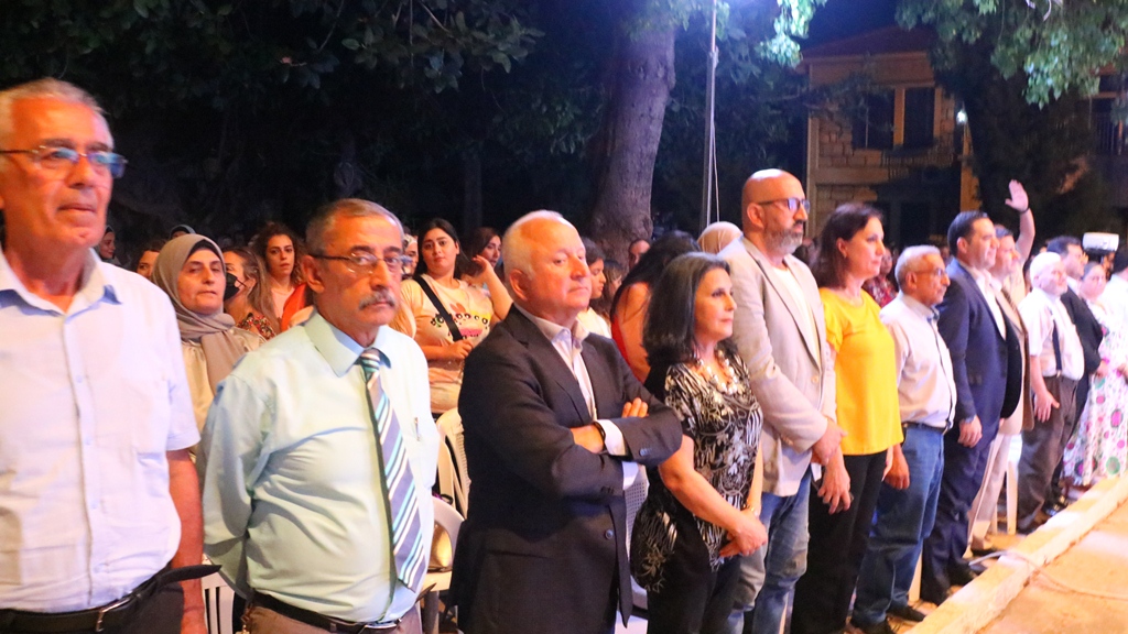 ثم قدمت طالبات الكولوني لوحة فنية بعنوان "بيكفي إنك لبناني".