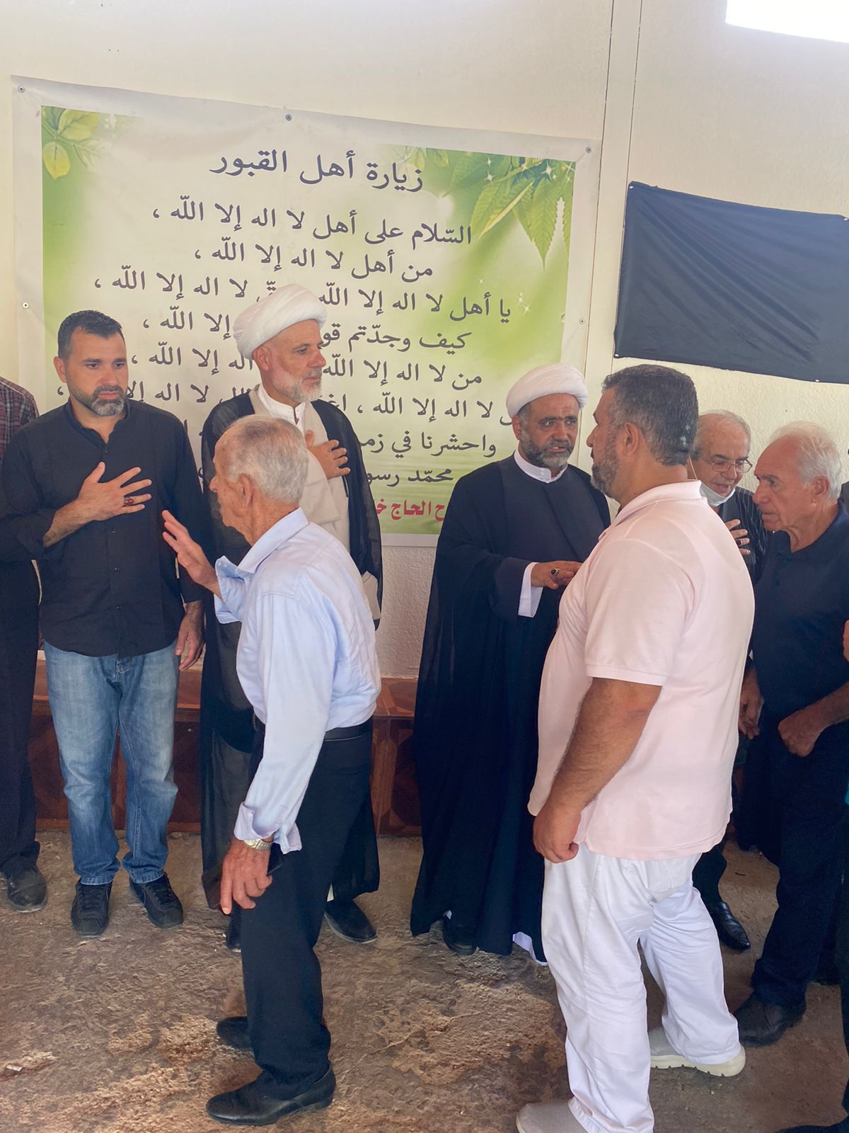 قام سعادة نائب دائرة مرجعيون – حاصبيا الحاج "علي حسن خليل" والوفد المرافق له عصر يوم السبت (03 أيلول 2022م) بأداء واجب العزاء والمواساة بوفاة المرحومة الحاجة "شمّا محمد خليل الحاج علي عبدالله" (أم علي) (1938 – 2022م) شقيقة مفتي مرجعيون – حاصبيا، إمام مدينة الخيام، سماحة "الشيخ عبدالحسين عبدالله"، وذلك في منزل المفتي بمدينة الخيام، حيث كان في استقبال سعادته والوفد المرافق له، فضيلة الشيخ محمد باقر عبدالحسين عبدالله (نجل سماحة المفتي) وثلة من الأهل والأقارب الذين غصت بهم الدار.