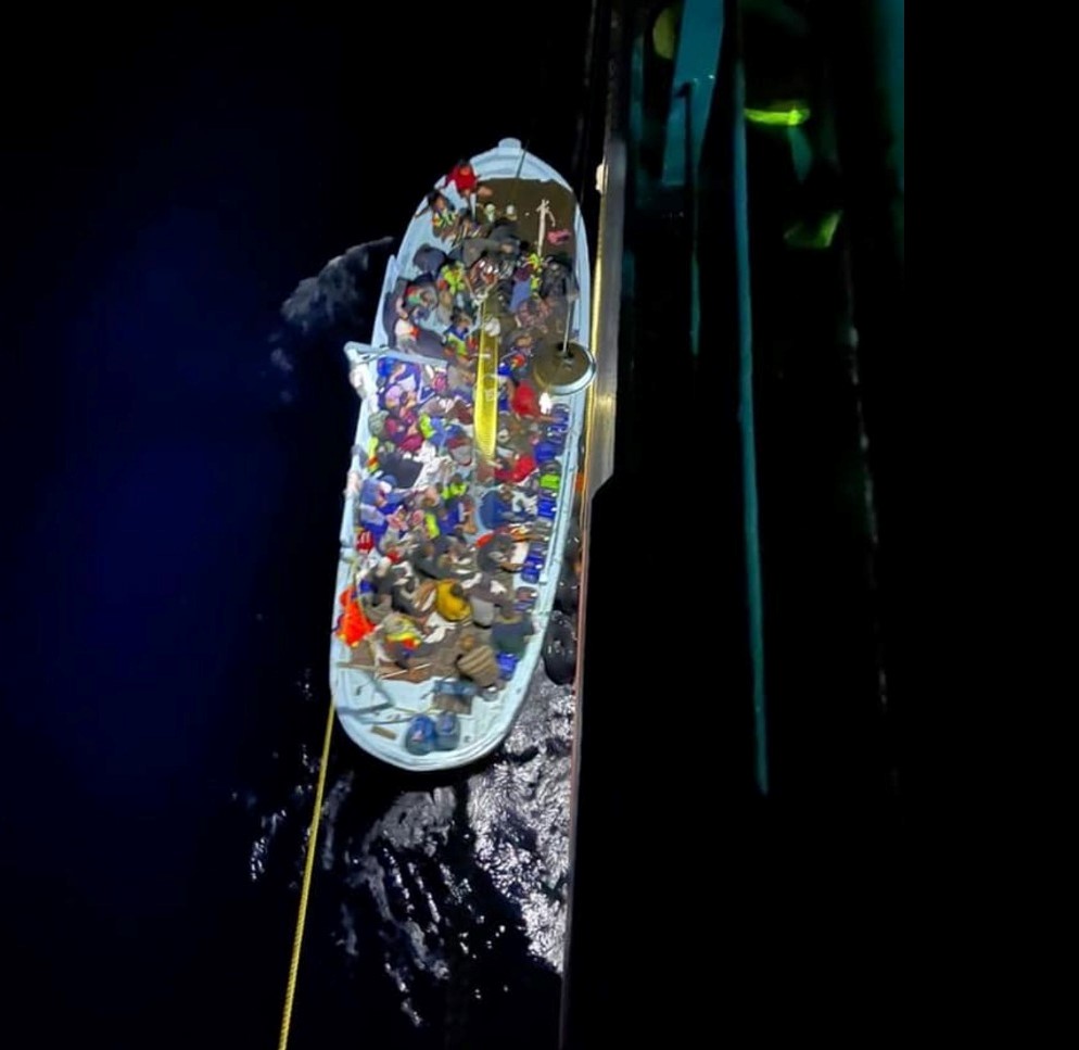 وفصّل البيان أعداد وحالة المهاجرين كالتالي: "تبين أن جنسياتهم ما بين سوريين ولبنانيين وفلسطينيين، غادروا من لبنان في هجرة غير شرعية، متجهين إلى أحد الموانئ الأوروبية وعددهم 60 فرداً (24 رجلاً و12 سيدة و20 طفلاً وأربعة رضع) بعضهم كان في حالة إعياء شديدة، حيث ظلوا لمدة أسبوع على متن القارب بالبحر. وعلى الفور، قامت السفينة بتوفير مساحة للإعاشة لهم بالإضافة إلى تقديم كافة الاحتياجات اللازمة لهم".