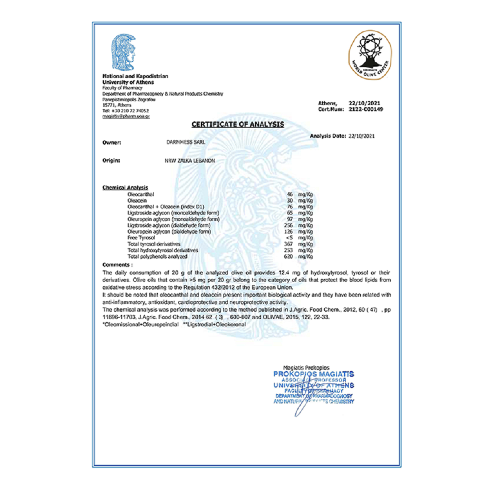 -العصر السريع فور الانتهاء من القطاف في معصرة عضوية حديثة، بحيث لا يتأثر الزيت بالهواء والحرارة والماء.
