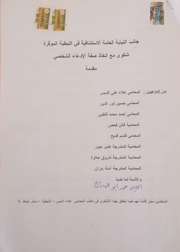 جانب النيابة العامة الاستئنافية في النبطية الموقرة