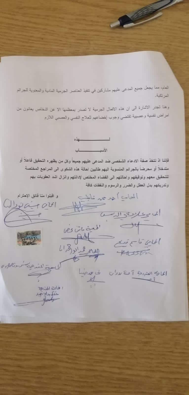 للتحقيق معهم وتوقيفهم واحالتهم إلى القضاء المختص لإدانتهم وانزال اشدالعقوبات بهم