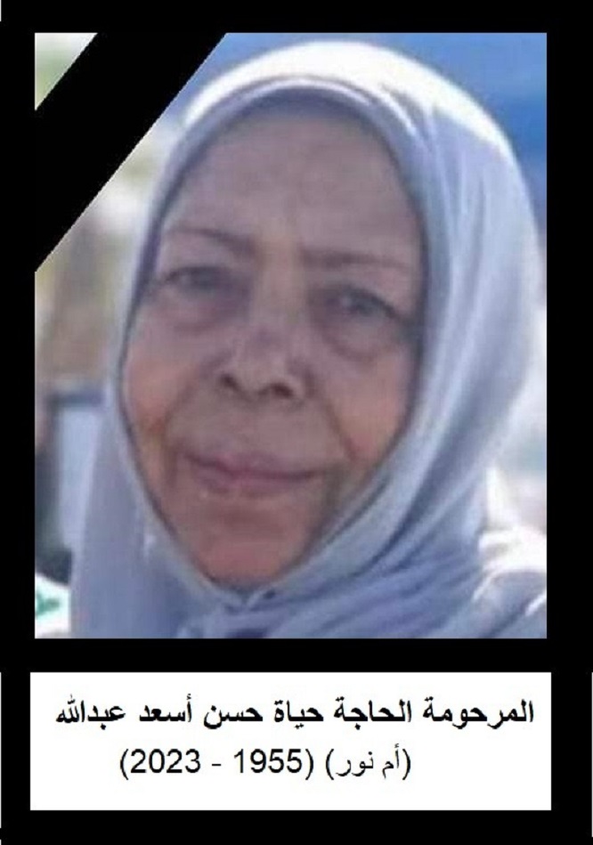 المـرحـومة الحاجة حياة حسن أمين الحاج أسعد عبدالله (أم نور)