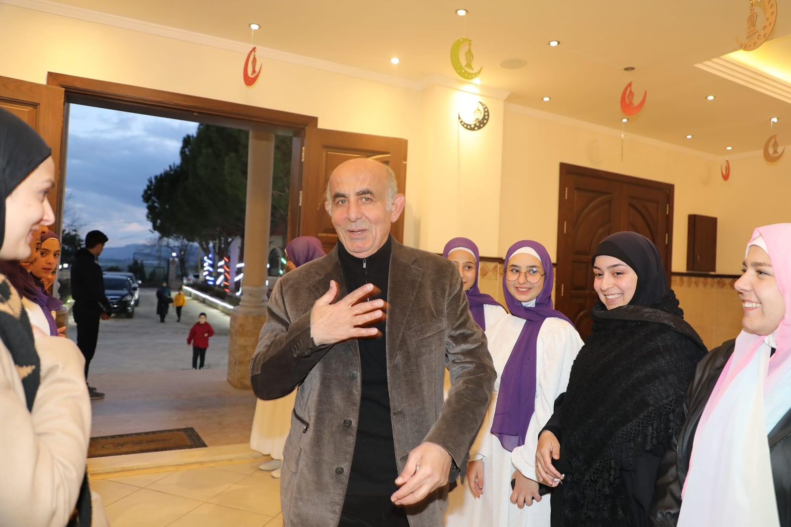 وكان في استقبال الضيوف الأعزاء على مدخل القاعة كوكبة ملائكية من أطفال المبرة وسط منشودات الترحيب وعبارات التأهيل بالزوار الكرام. ثم ولّجوا الى داخل "قاعة الهنا" تلك القاعة التي شُيدت على اسم المرحومة قرينة الحاج الفاضل، حيث رحّب بضيوف تلك الأمسية، مضيفهم الكريم "الحاج أبو حسن"، والسيدة قرينته الحاجة لينا زعرور، ومدير ثانوية عيسى بن مريم (ع) ومبرة النبي إبراهيم (ع) المربي الحاج "أحمد عطية"، والسيدة قرينته المربية أمل أسعد، ومن ثم أخذوا أماكنهم في وسط القاعة، حيث تفقدهم شخصياً الحاج الفاضل متأهلا بهم، مطمئناً عليهم، وشاكراً لهم تلبية دعوته النبيلة في هذا الشهر الفضيل.