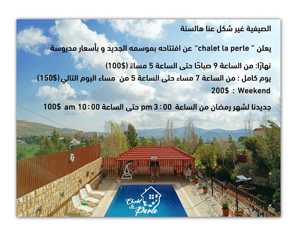 تعزيزاً للحركة التجارية والسياحية في منطقتنا، أتم الصديق عماد الأمين أشغال بناء منتجع سياحي، شاليه مع مسبح بفخامة متميزة، أطلق عليه اسم "Chalet La Perle"..