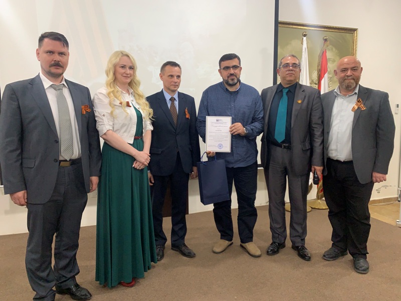 ثم كانت محاضرة لممثل جامعة تامبون الحكومية الدكتور ايغور ميخائيلوف، تحدث فيها عن دور روسيا في الحرب العالمية الثانية ، معتبرا انها "وريثة الاتحاد السوفياتي من النواحي القانونية والسياسية والتاريخية، ولذلك فإن مفاهيم روسيا والاتحاد السوفياتي هي مفاهيم متكاملة. فالحرب العالمية الثانية هي الصراع الأكبر في تاريخ البشرية، وهي تركت أثراً كبيراً على تطوير العالم فيما بعدها، كما أن نتائجها حددت بدرجة كبيرة صورة العالم اليوم، حيث رُسمت حدود الكثير من الدول بانتهاء هذه الحرب. حيث بنهاية الحرب ظهر عامل مهم من عوامل تطور العالم، وهو حركات إنهاء الاستعمار، التي انتصرت على الإمبراطوريات المستعمرة وأدت إلى استقلال دول آسيا وافريقيا. ولعبت روسيا دوراً كبيراً في ذلك. وتأسيس منظمة الأمم المتحدة هو قرار موحد من كل من روسيا، والولايات المتحدة الأمريكية، وبريطانية، أي ما يسمى بـ"الثلاثي الكبير" فترة الحرب العالمية الثانية. فروسيا هي عضو دائم في مجلس الأمن في منظمة الأمم المتحدة بجانب الدول الأربعة الأخرى المنتصرة في الحرب العالمية الثانية، أي الولايات المتحدة الأمريكية، وبريطانيا، وفرنسا، والصين".