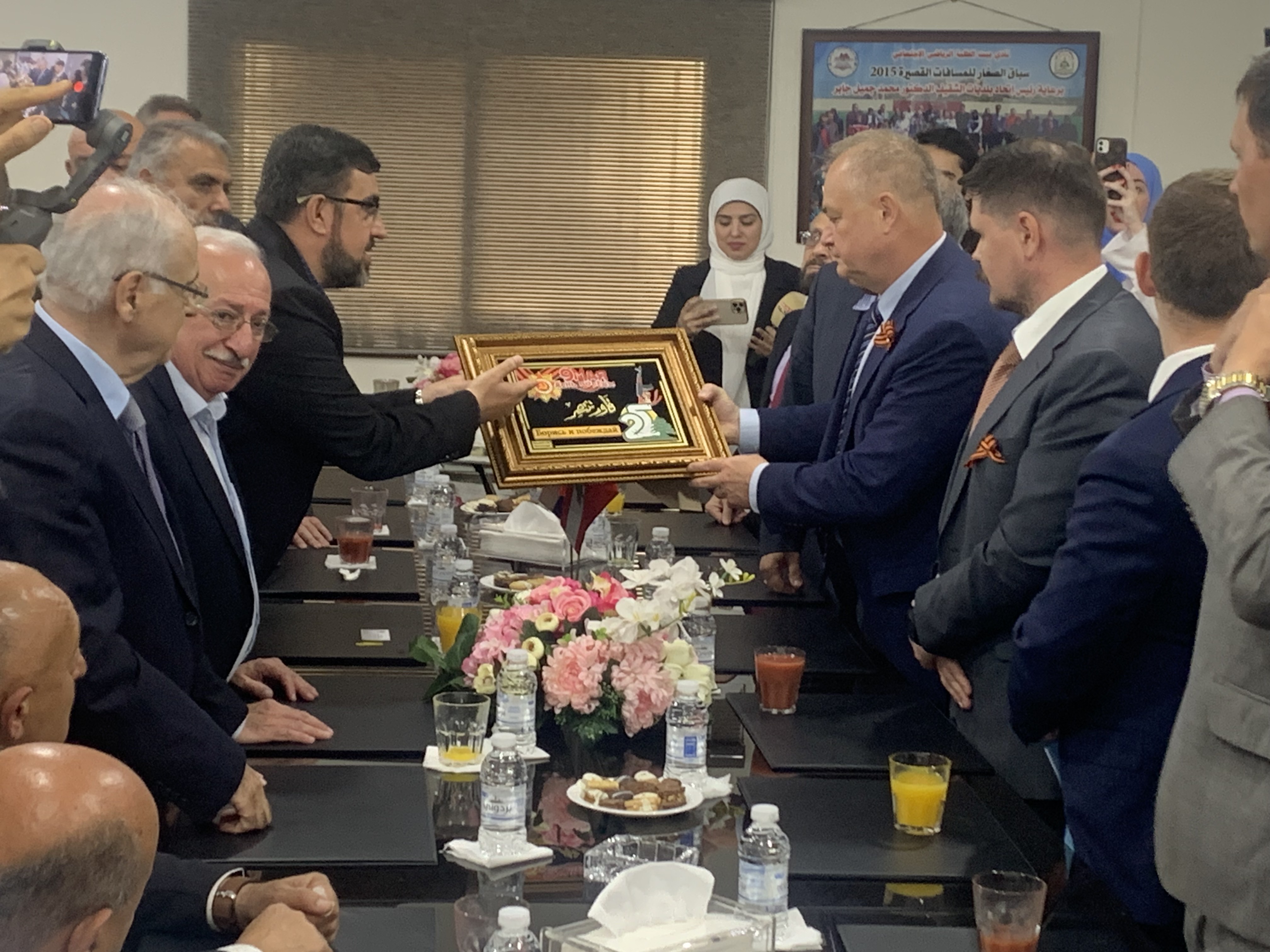بعد ذلك، كان تبادل دروع تذكارية.وازاح السفير الروسي الستارة عن لوحة تؤرخ للمناسبة وثم زرع شجرة في الحديقة تخليدا للمناسبة.