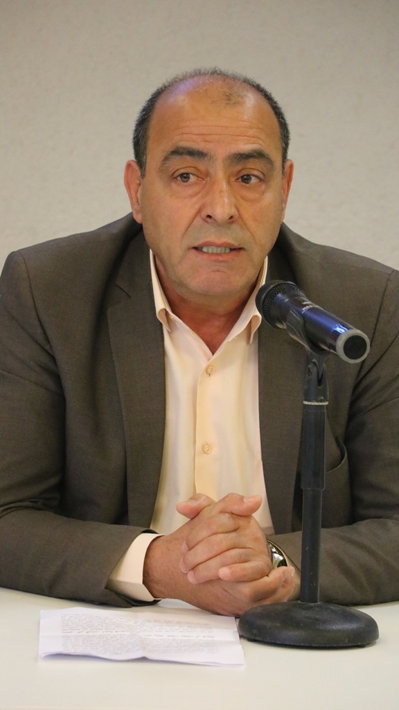 أضاف، إنني فلسطيني، كَبُرت وكبُرت امامي أيامي، أحأور أحوالي، أرى كل شيء ومن حولي قومي، وينسجُ الجدال في قلب الخيال، تارة نمتشقُ سلاحاً، وتارة تهوى بنا أحلامنا لتأخذنا إلى هناك، إلى حيث كنا مُحملين نماذجاً صلبة في تُربة مالحة، هناك أي قبل مئات، بل ألاف السنين.