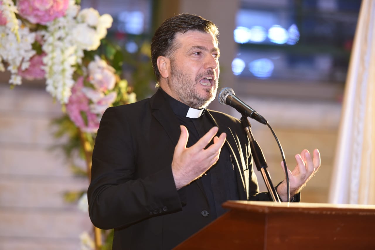 فأهلاً وسهلاً بصاحب الرعاية أمين عام المدارس الكاثوليكية الأب المخلصيّ يوسف نصر، وأهلاً بالحضور الكريم في عيد مدرستنا السبعين وهي تخرّج فوجاً جديداً من طلابها يحملون شعار : " مسيرة نبل ورقي "..