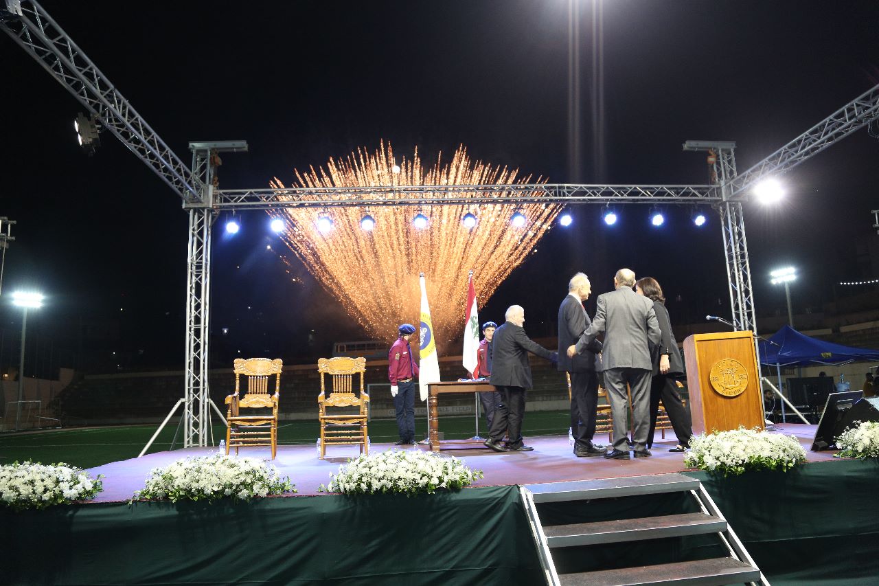 بدأ الحفل بدخول موكب الخريجين على وقع الموسيقى، ثم النشيد الوطني اللبناني ونشيد المدرسة، ثم قدم القس مخايل سبيت صلاة بارك فيها الخريجين والهيئتين الإدارية والتعليمية.