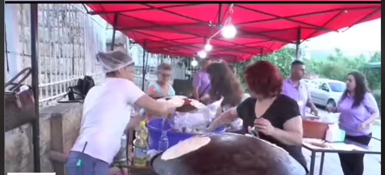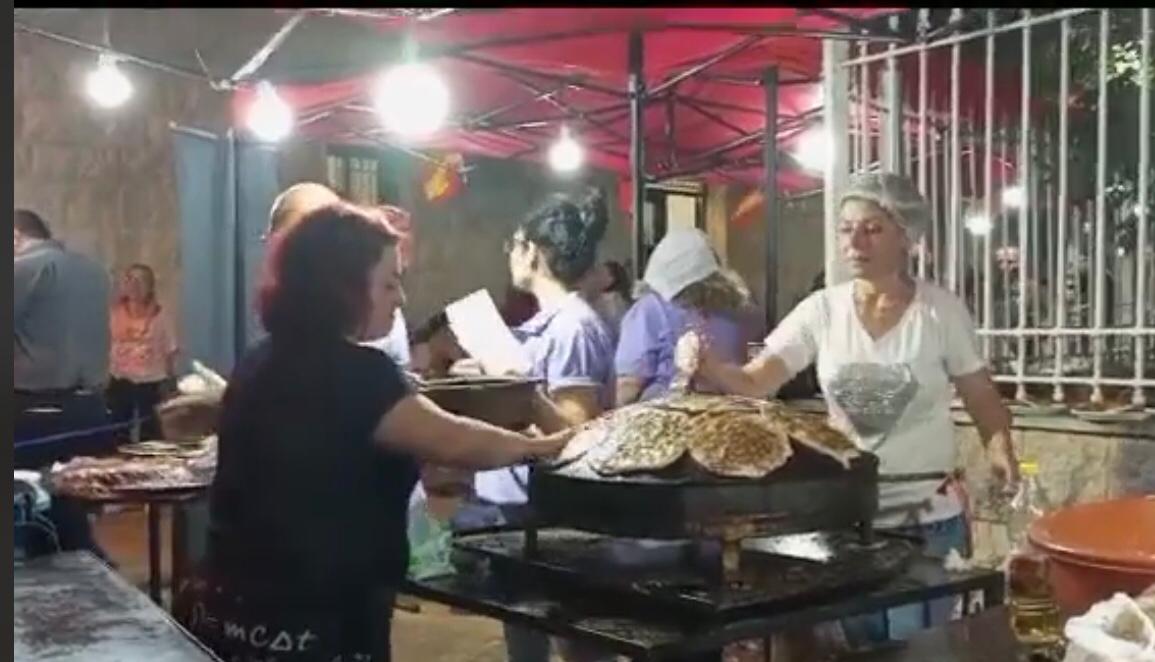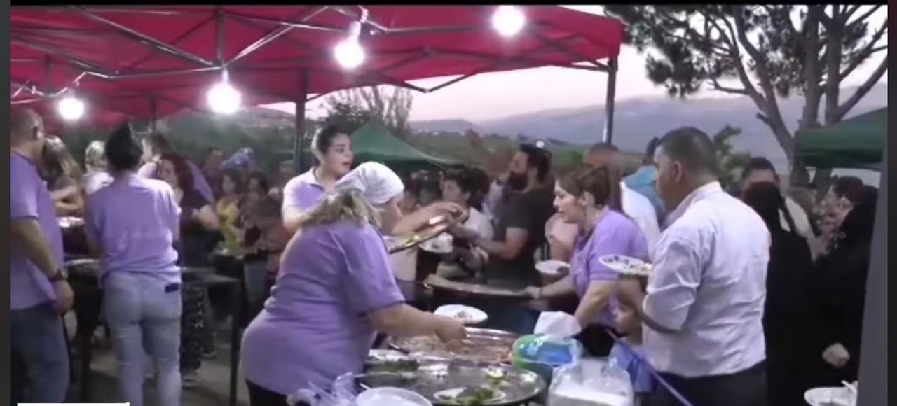 وبعد القداس الالهي، اقيم حفل وعشاء قروي نظمه اهالي سردا وابناء رعية مار جرجس القليعة ، ضم تقديم مأكولات ومشروبات لبنانية تراثية بالمجان، مثل مناقيش الصاج وخبز المرقوق ، والشاورما ،والمشاوي على الفحم والتبولة والعرق والكنافة والحلويات والفواكه من خيرات ارض سردا، كما وأعدت الكتيبة الاسبانية احد اشهر اطباقهم والاكثر شعبية وهو الباييلا.