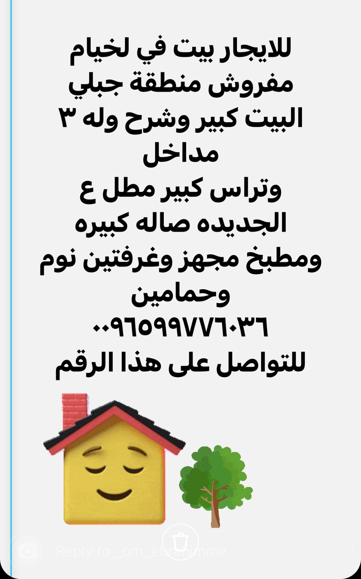 للمزيد من المعلومات، للجادين فقط، الاتصال مباشرة مع أصحاب العلاقة، على الرقم : 96599776036+