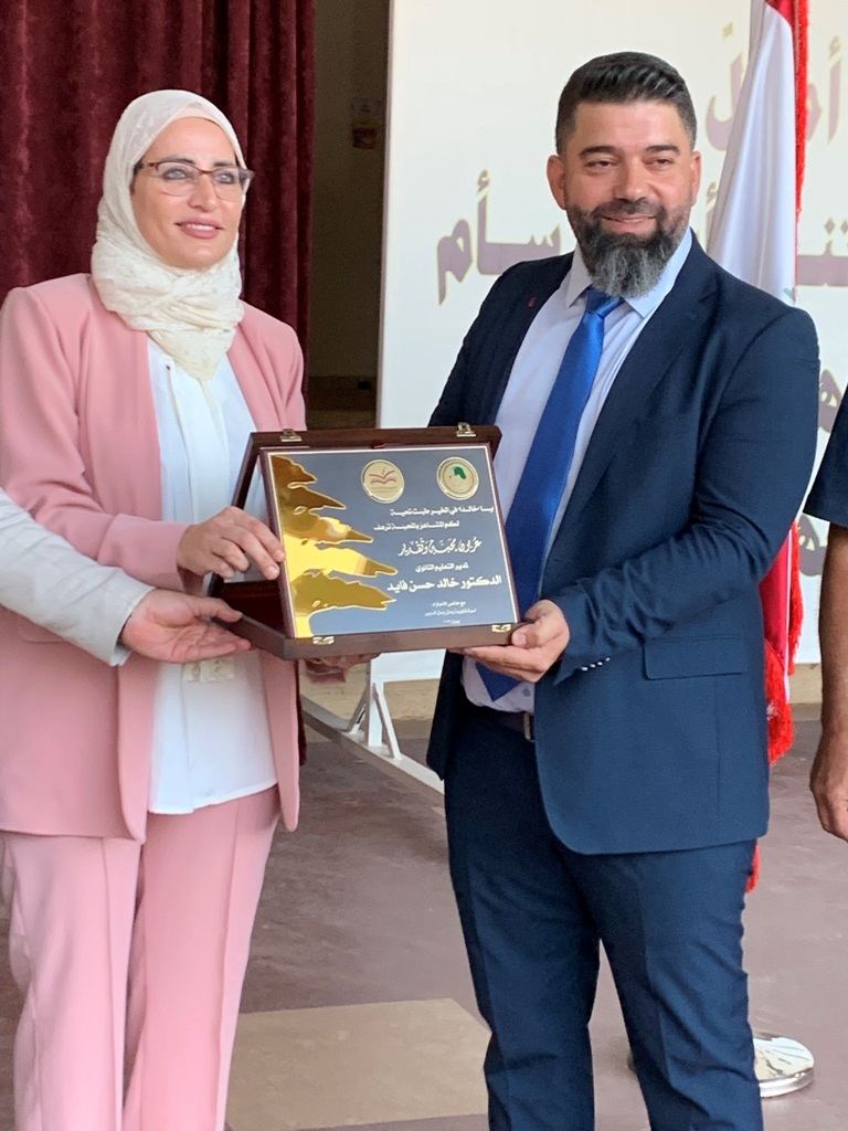 بعد ذلك قدمت جوني درعا تقديريا للعبد ، ثم وزعت الشهادات التقديرية على الطلاب.