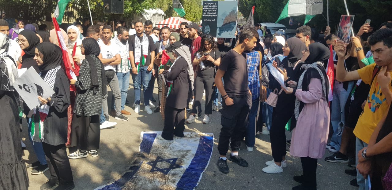 اختتمت الوقفة التضامنية باحراق العلم الاسرائيلي .