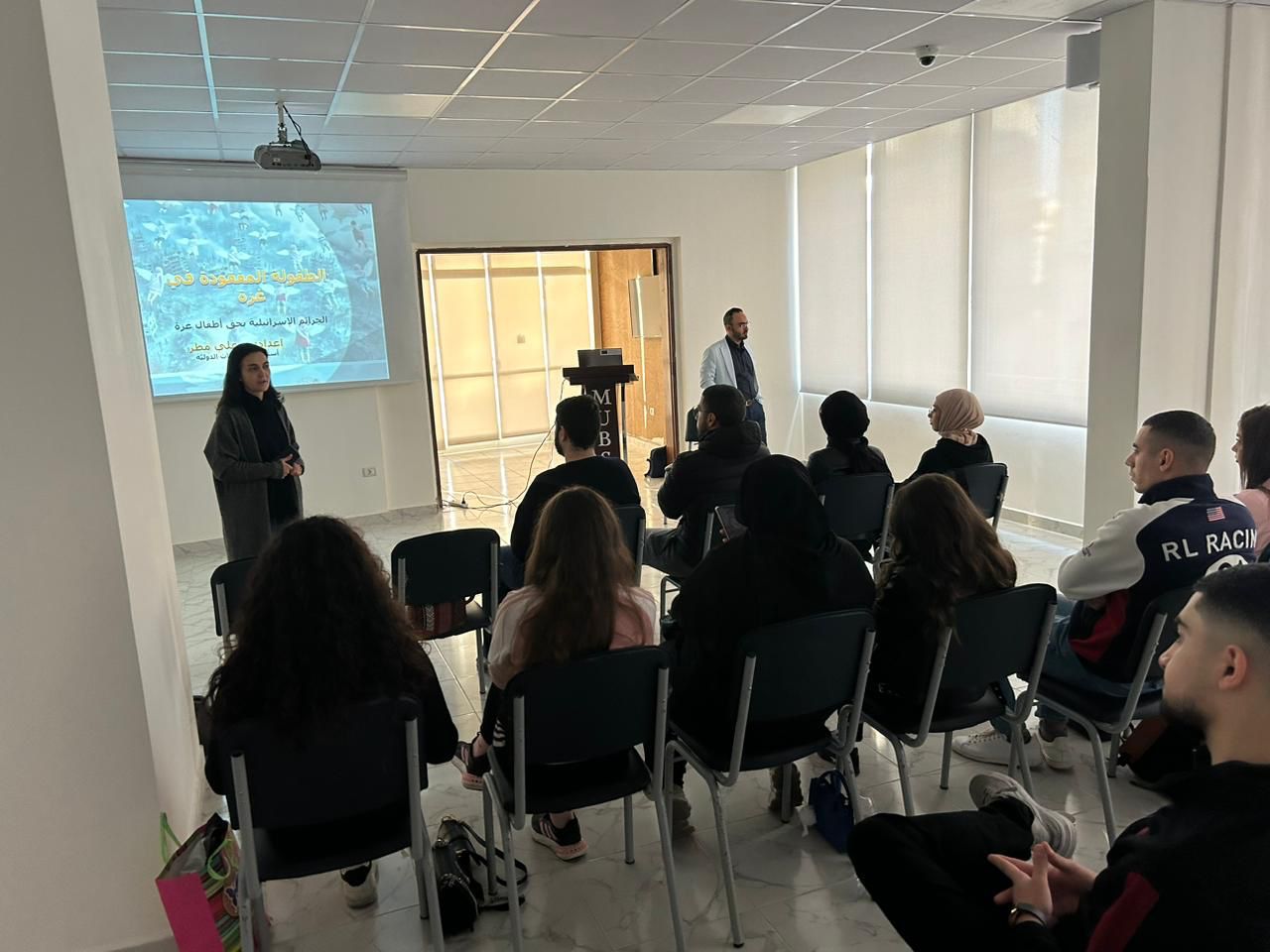 نَظَّمَ مكتب النَّجاح الطلابي وقسم الحياة الجامعية في الجامعة الحديثة للإدارة والعلوم MUBS ، مُحاضَرة تناوَلَت موضوع "حقوق الطفل في مناطق الحرب: فلسطين كحالة، في قاعة احتفالات الحرم الجامعي- فرع بدارو، يوم الجمعة الواقع في الخامس عشر من شهر كانون الأول.