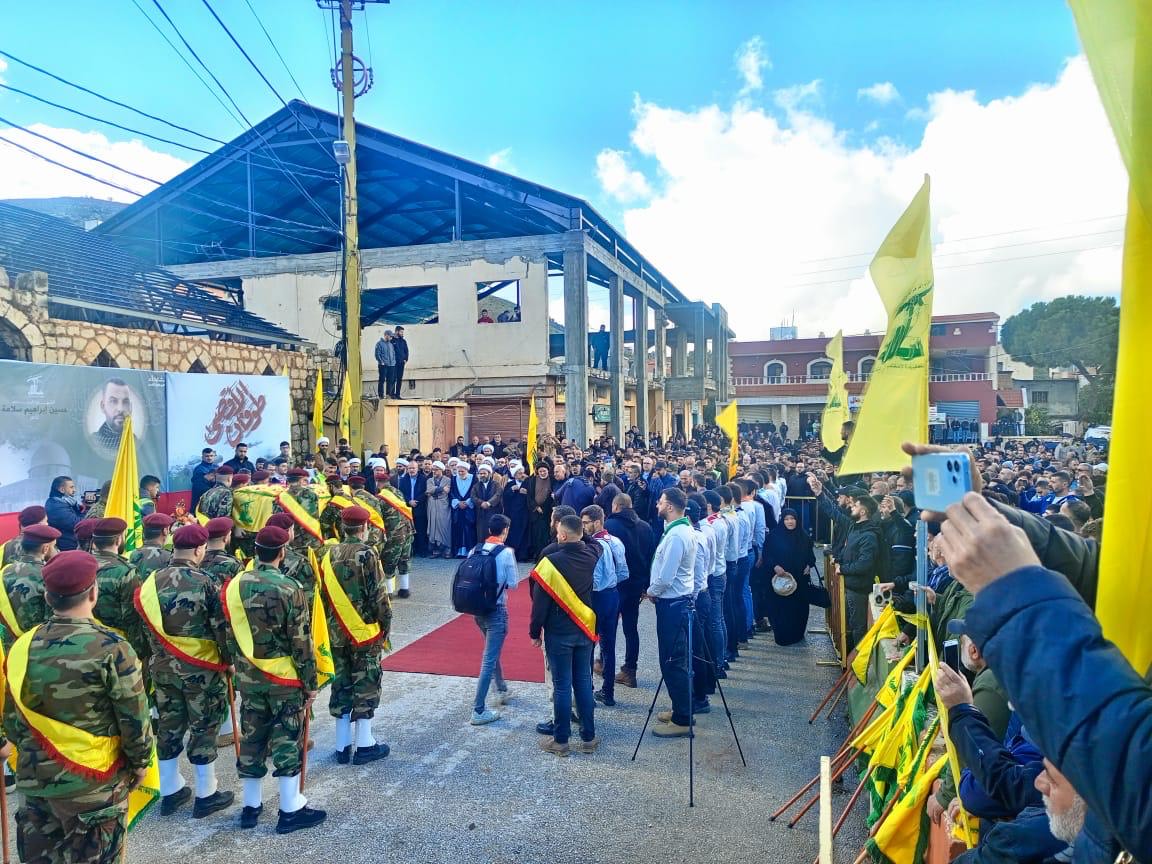 وأقيمَ للشهيد المراسمُ التكريميةُ على وقعِ عزفٍ موسيقى كشافةٍ الإمام المهدي، فيما كان رفاق الدرب على الموعدِ لأداءِ قسمٍ الوفاءِ والبعية، قبل ان يجوب المشيعون شوارع عيترون وهم يرددون اللطميات الحسينية وهتافات “الموت لاسرائيل “ قبلَ ان تقامَ الصلاةُ على الجثمانِ الطاهر