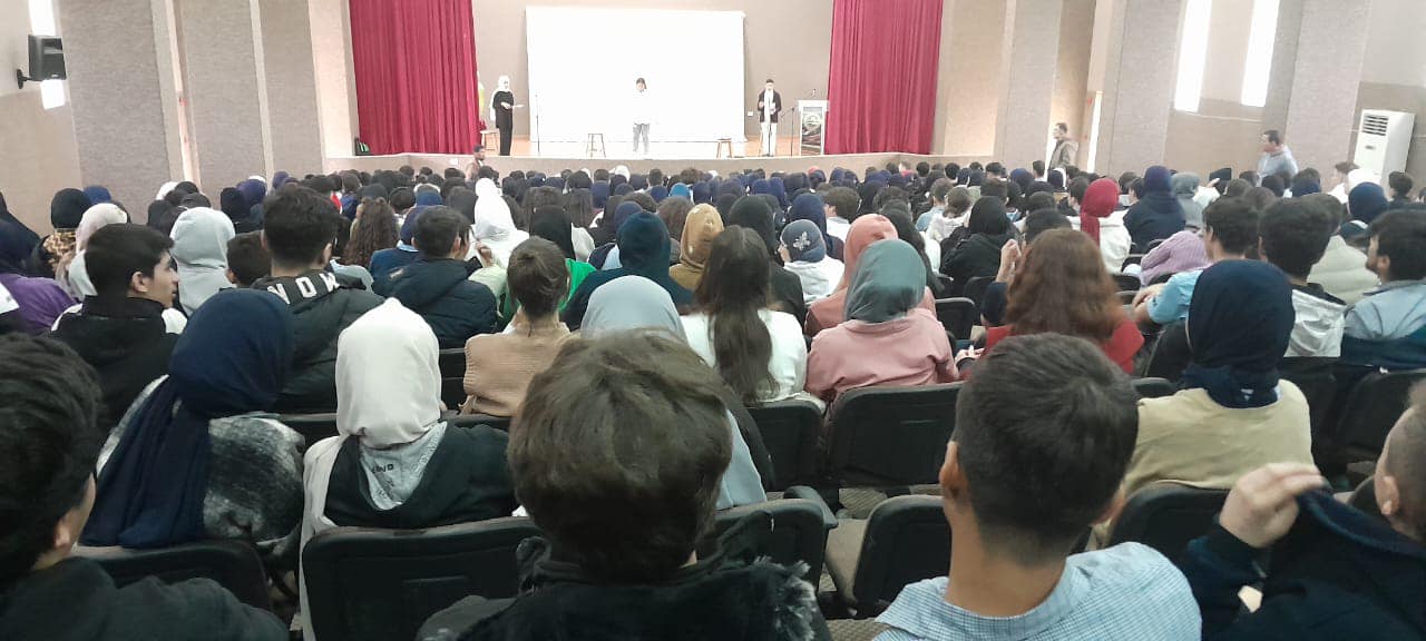 بعد النشيد الوطني ونشيد الثانوية افتتاحا ، شارك طلاب من المرحلتين بعرض عمل مسرحي هادف يبيّن واقع اللغة العربية ويمجدها.