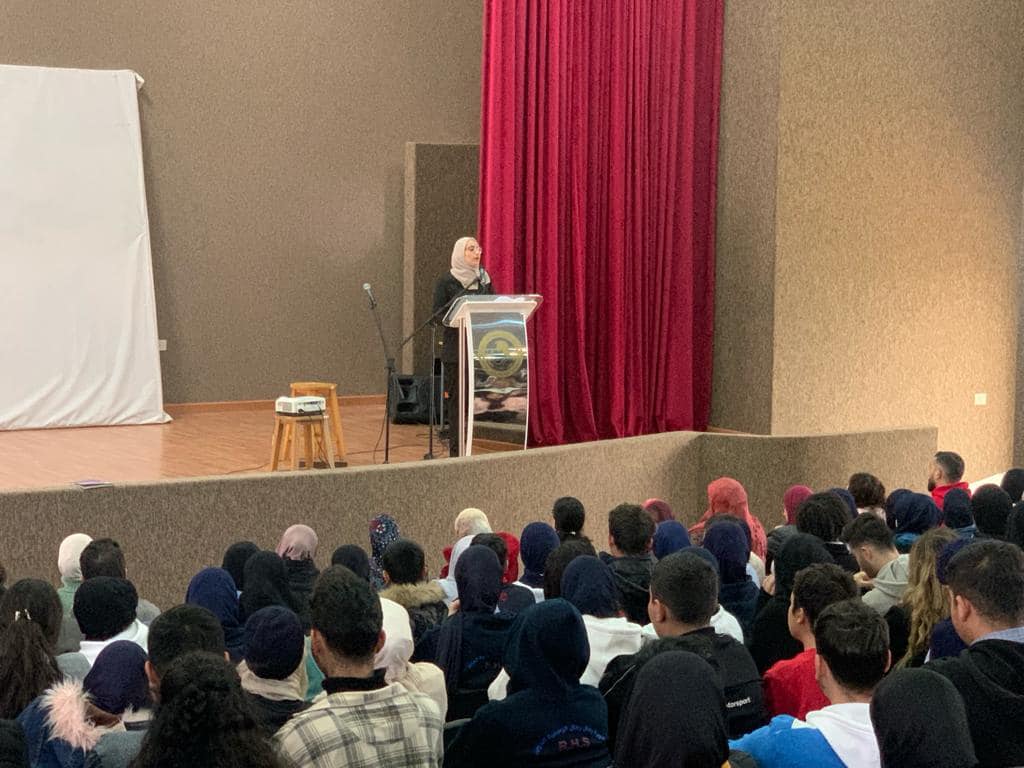 بعدها ألقت مديرة الثانوية نعم جوني كلمة دعت فيها الطلاب للعودة إلى الحرف العربيّ.