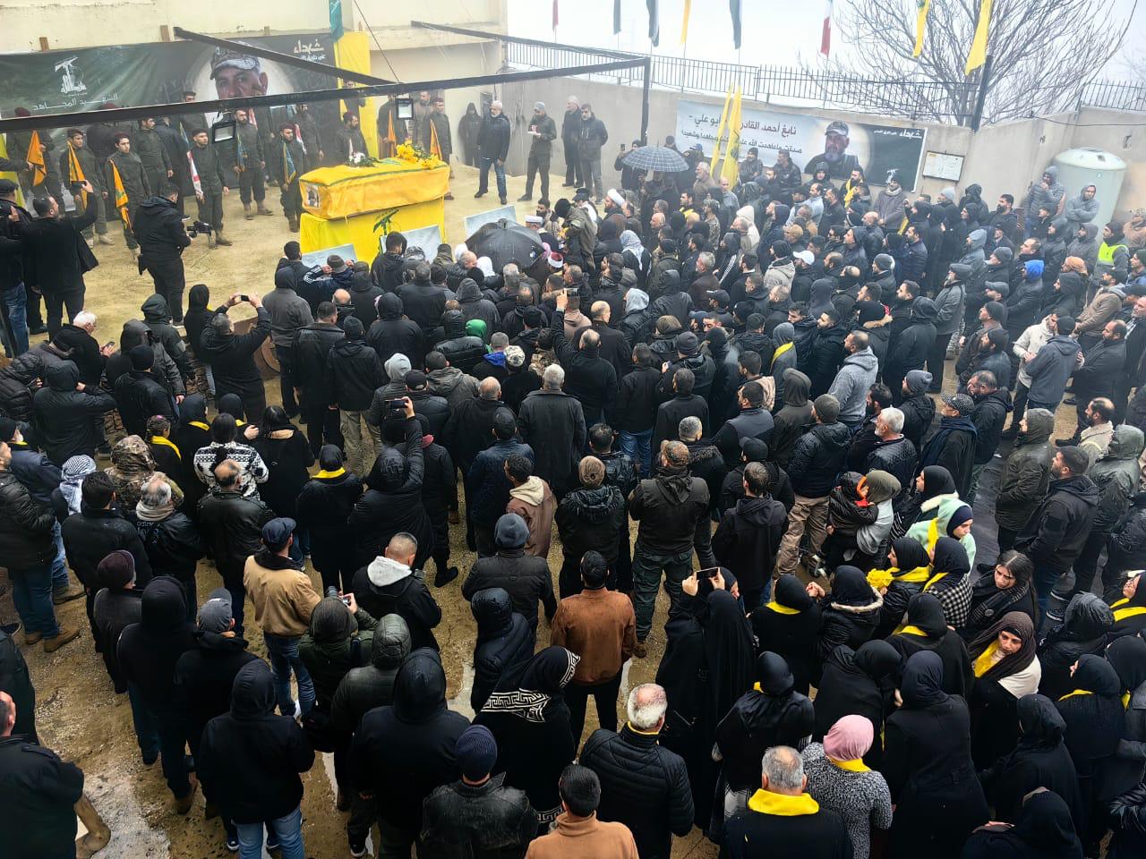 بعدها، انطلقت مسيرة التشييع من ساحة البلدة باتجاه الجبانة، حيث كانت لحظات الوداع لجثمان الشهيد نابغ، قبل أن يوارى في الثرى.