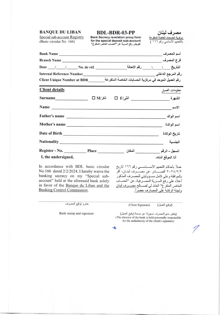 وقد صدر عن "مصرف لبنان" التعميم 166 يتعلق بإجراءات استثنائية لتسديد الودائع المكونة بعد تاريخ 31- 10-2019 بالعملات الأجنبية.