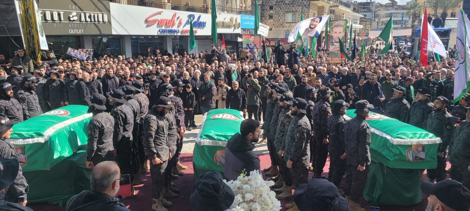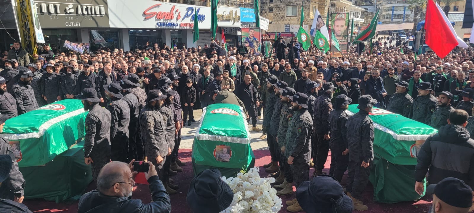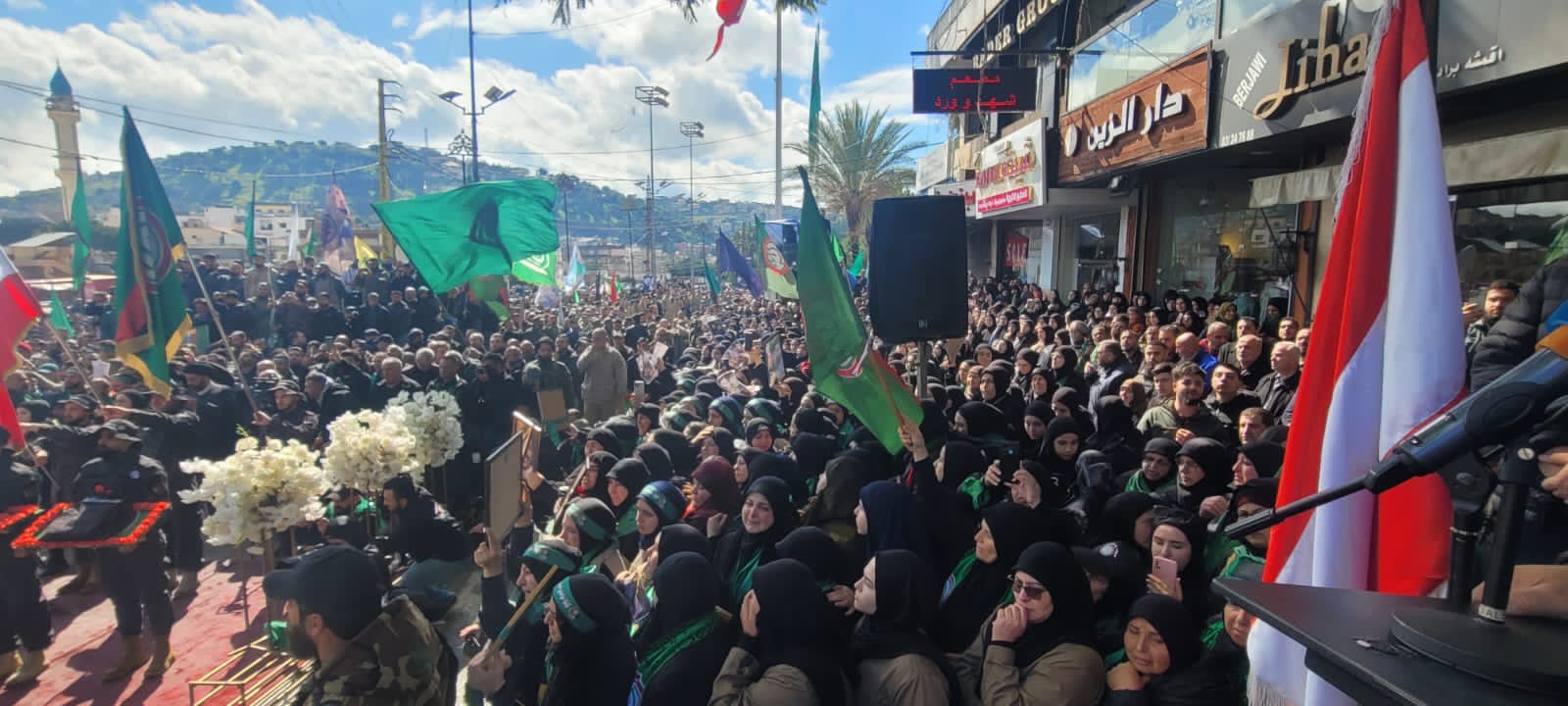 مراسم تشييع حاشدة لشهداء حر كة أمل في مدينة النبطية . قبيسي : لا نريد لبنان الا الخير تعالوا نجتمع على قضية واحدة وننبذ الطائفية ونلتقي على كلمة سواء .