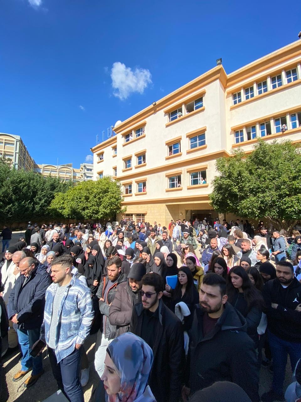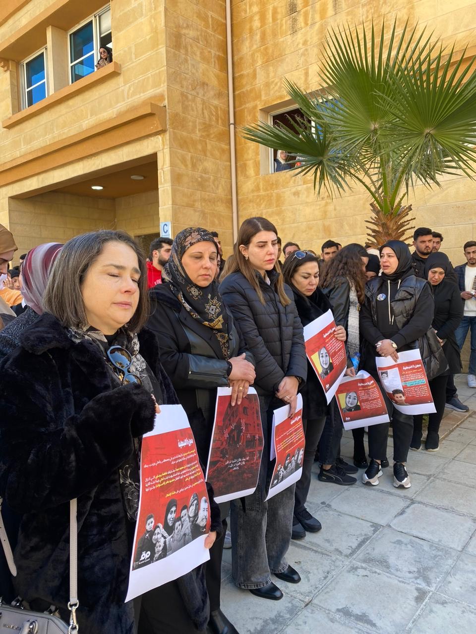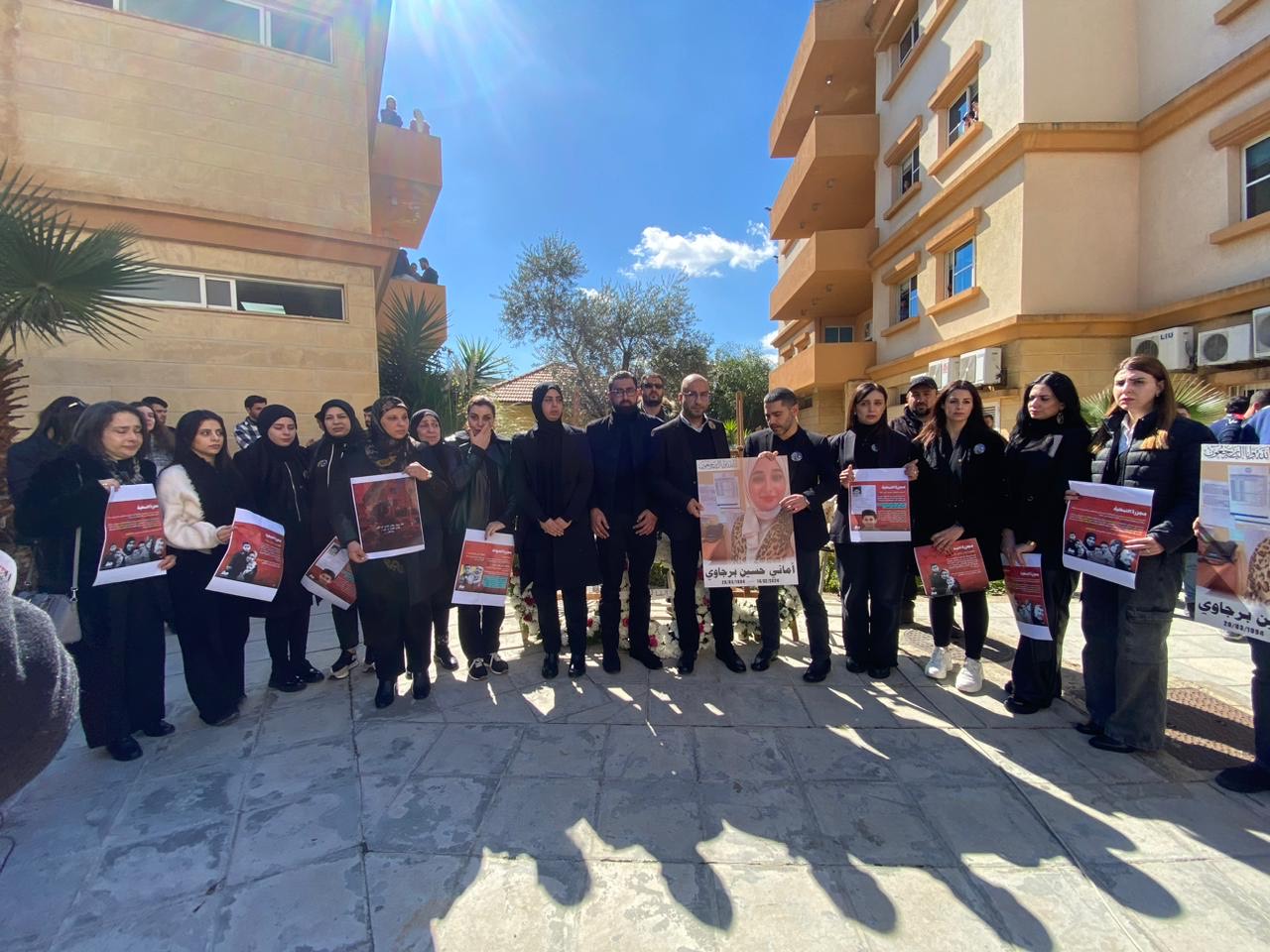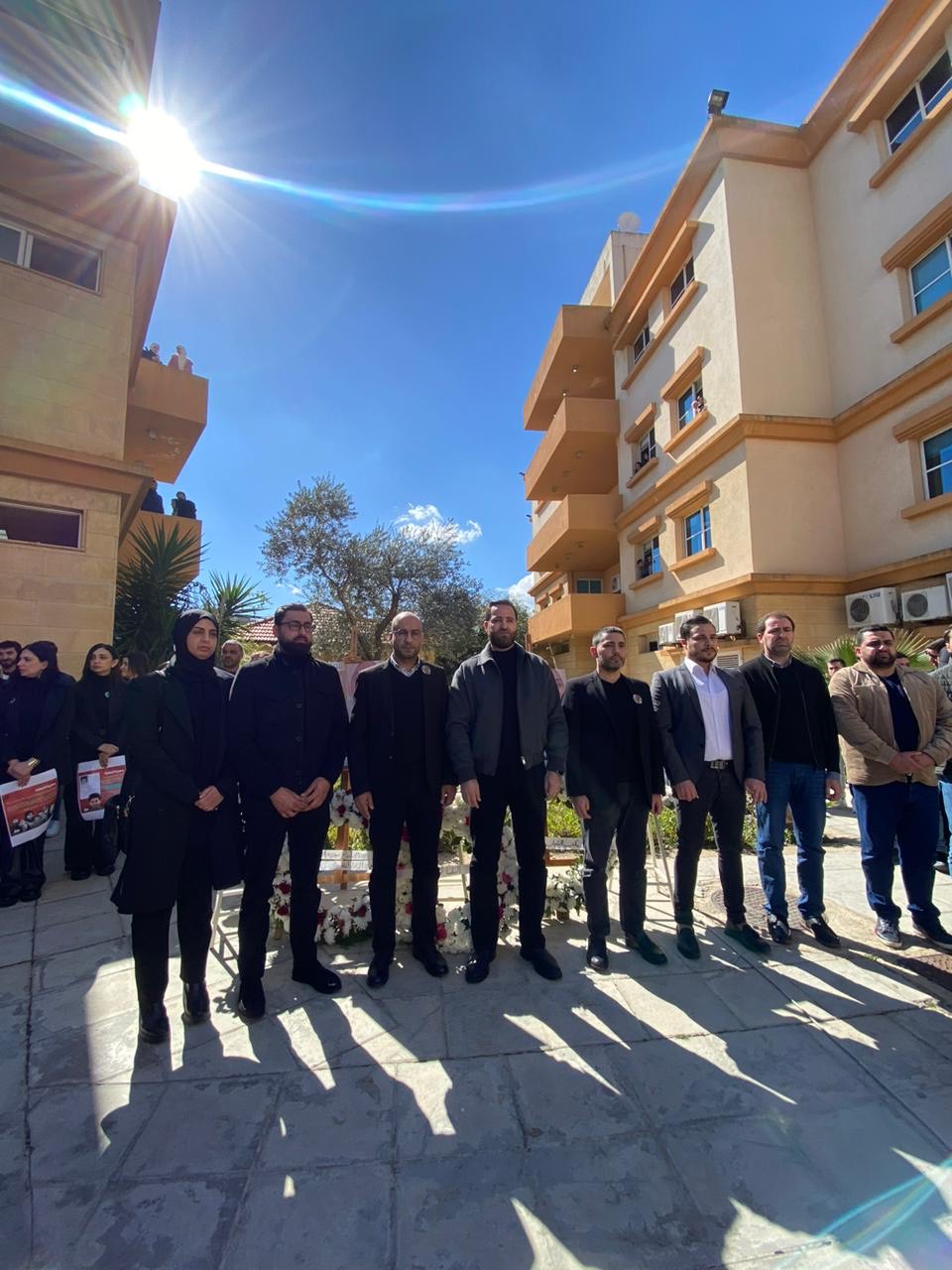 شارك في الوقفة ذوو الشهيدة، المدير الأكاديمي للجامعة الپروفسور حسّان خشفه، المدير الإداري الأستاذ وائل رباح، الدكتور محمد قانصو ، العمداء التنفيذيون وأساتذة الأقسام، زملاء الشهيدة من الكادر الإداري،