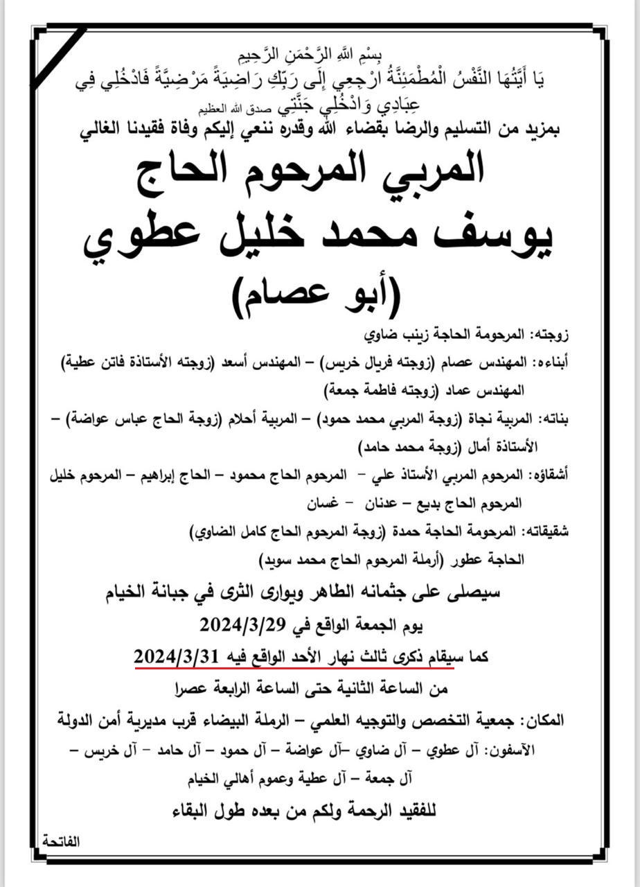 لمناسبة مرور ثلاثة أيام على وفاة المربّي المرحوم
